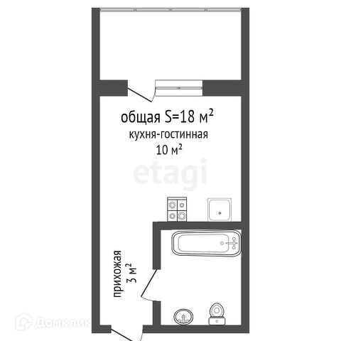 Общая площадь 18 м2