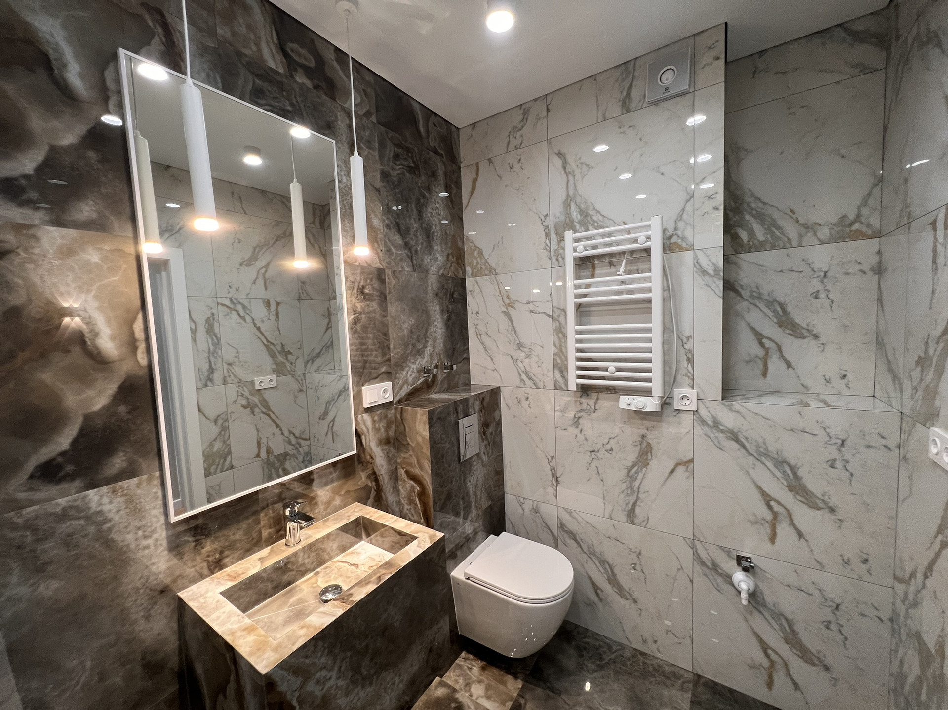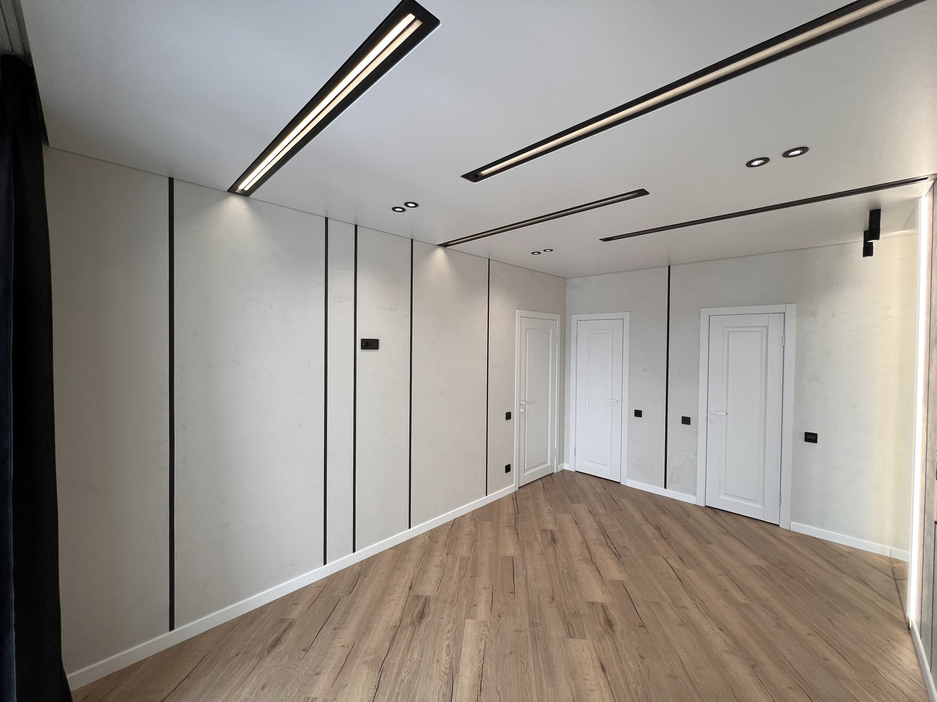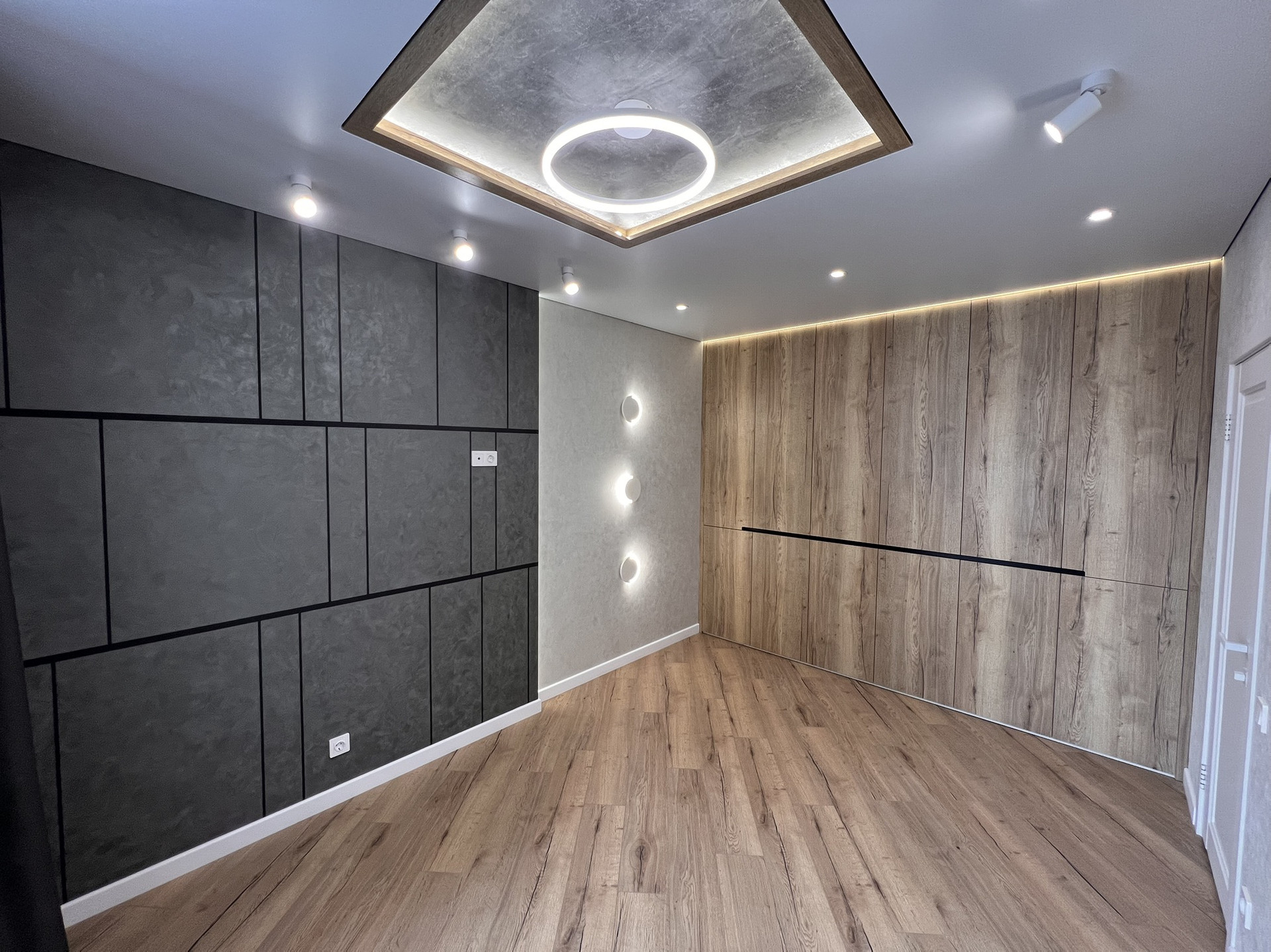 - современный дизайнерский ремонт: стены - декоративная штукатурка от известного бренда Derufa, подоконники - керамогранит, тёплые полы в су и на балконе, уложен дорогой ламинат 12 мм, шикарный проект по освещению, европейская сантехника, крупноформатный керамогранит, каменная столешница на кухне и многое другое.