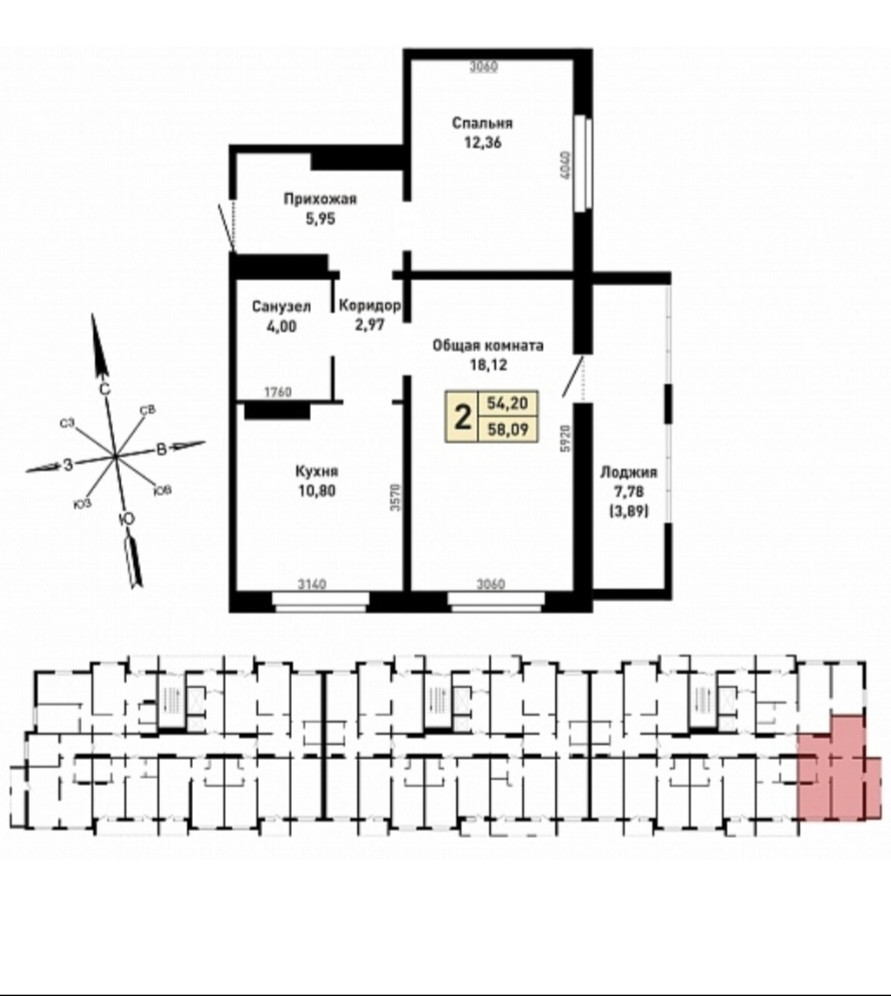 Общая площадь 58 м2