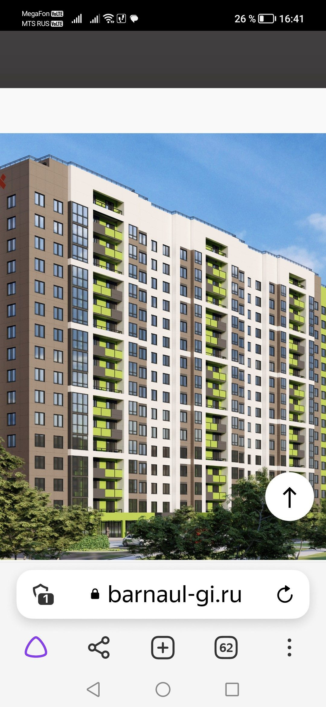 2-комнатная квартира, 58 м2, этаж 7 / 16, на продажу в Барнауле, улица Энтузиастов, 63
