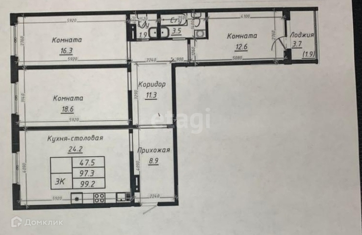 Общая площадь 99.2 м2