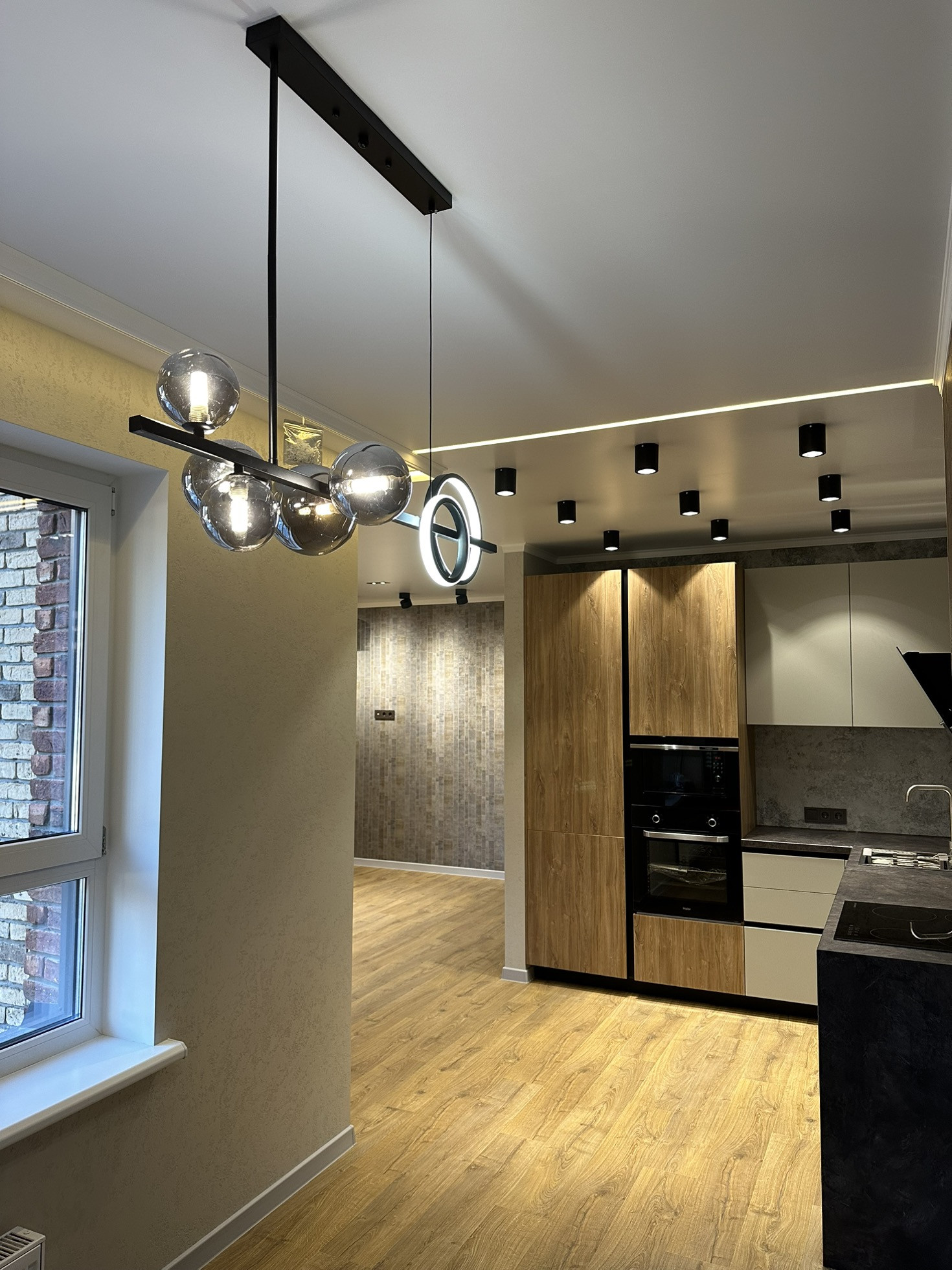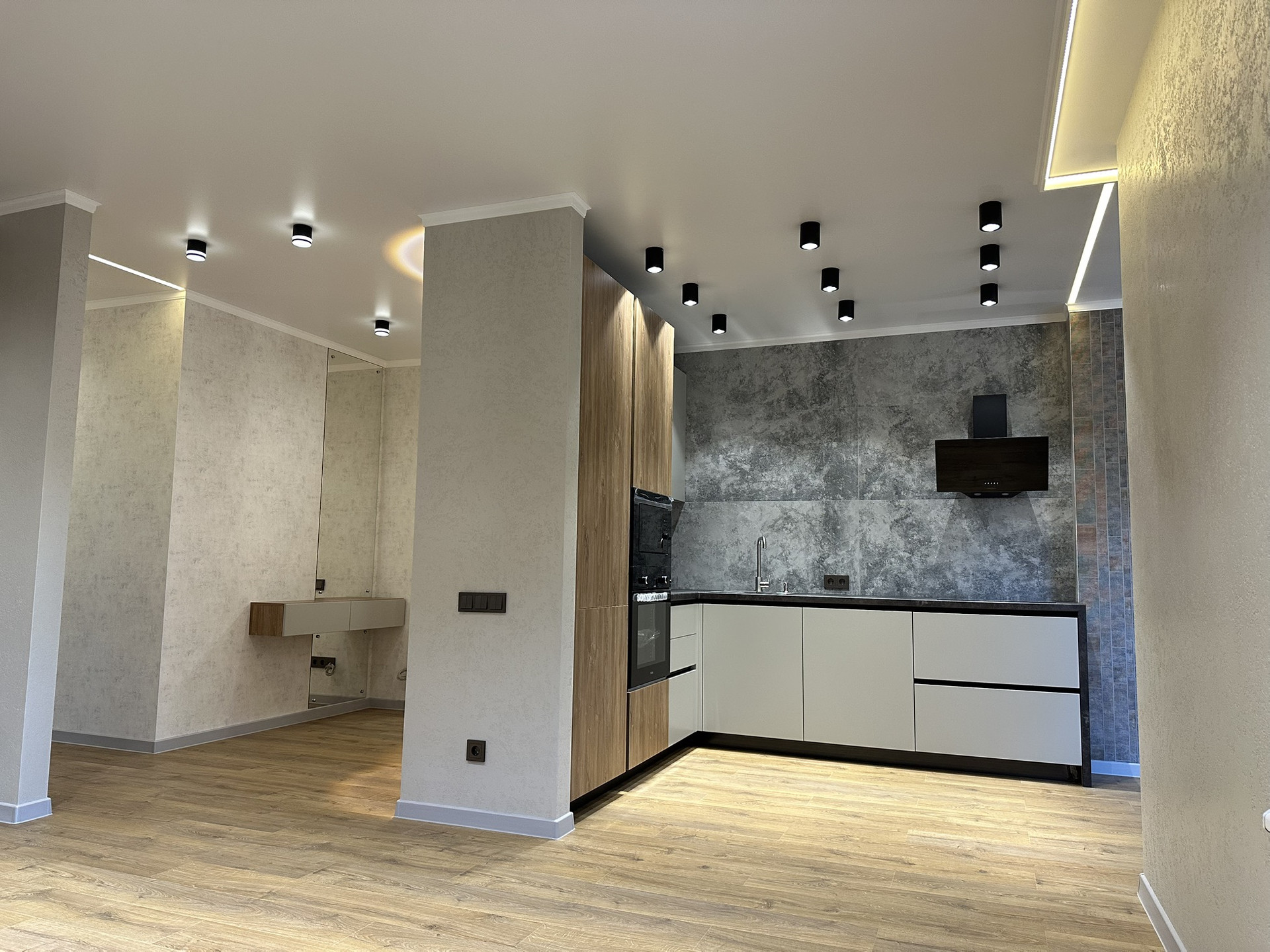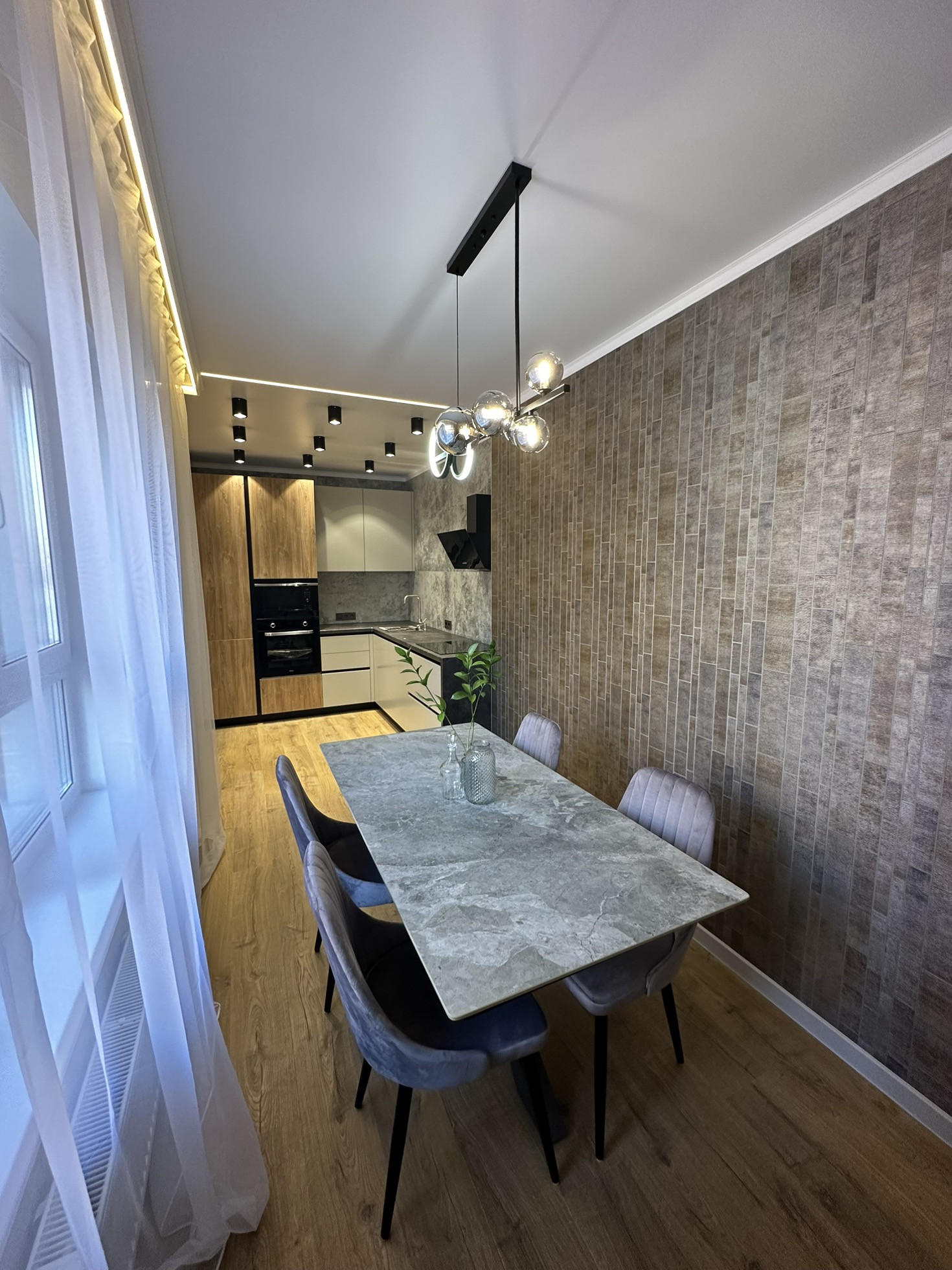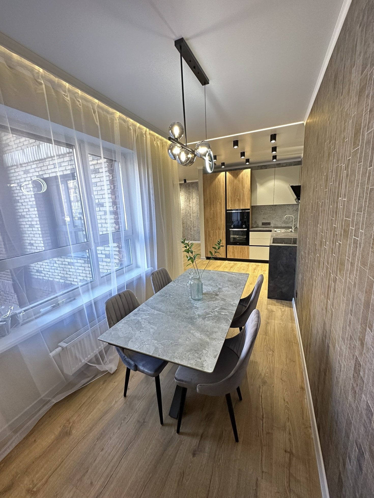- Просторная кухня-гостиная 30кв.м, изолированная обеденная зона у окна.