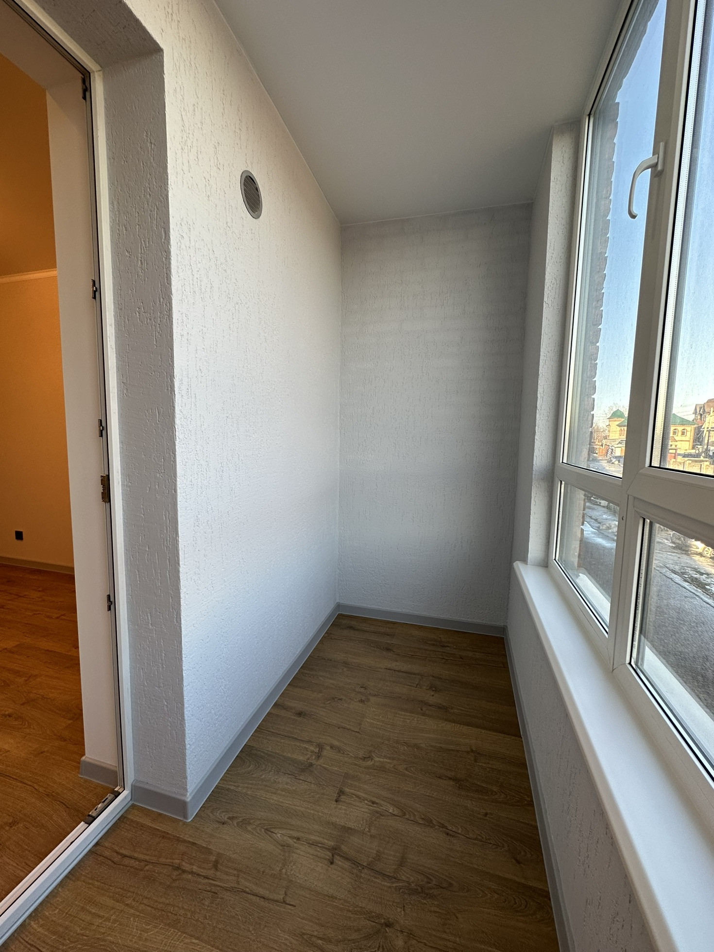 Откосы на окнах и дверных проемах выполнены из гипсокартона, окрашены вместе с потолочным багетом.