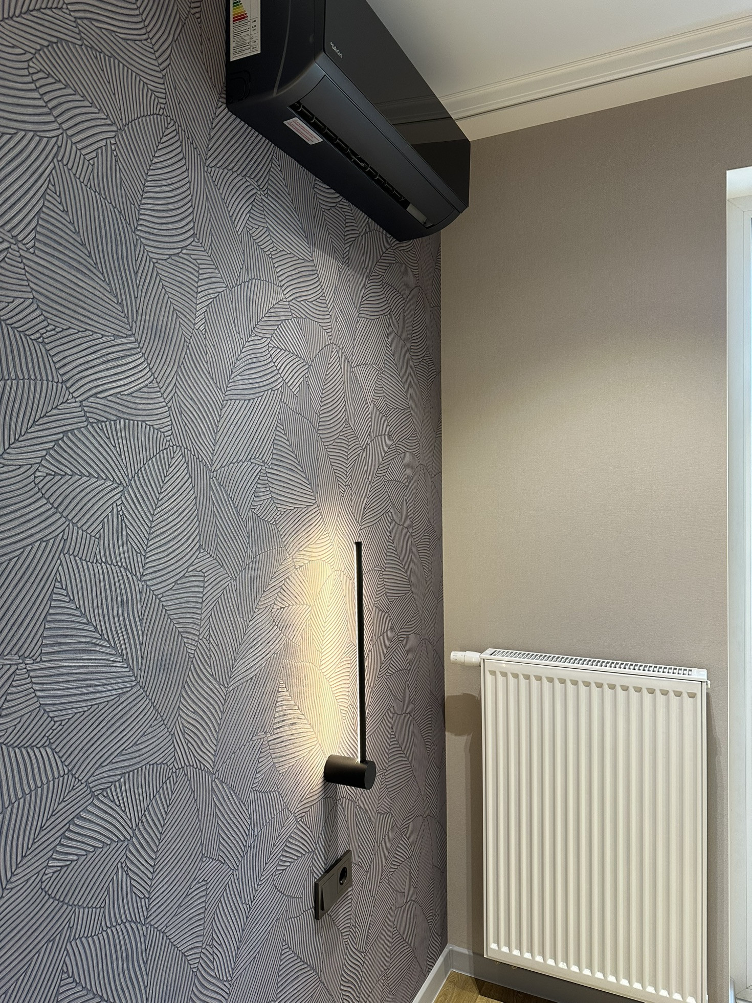 Установлено два кондиционера чёрного цвета, слив выведен во внутреннюю канализацию по всем нормам.