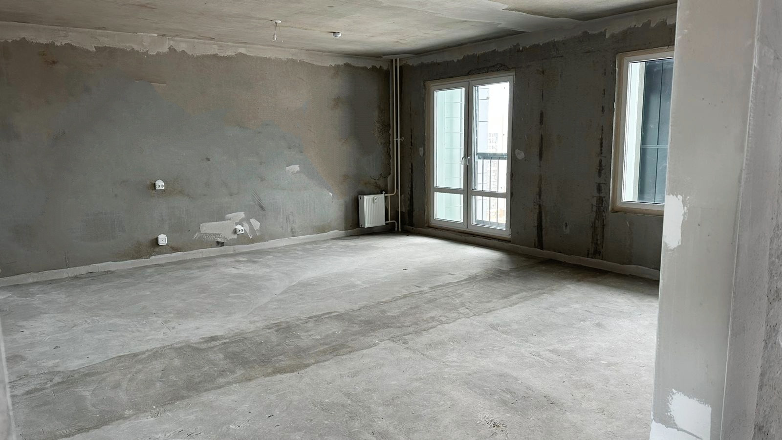 Квартира продается под отделку; застройщиком установлены радиаторы отопления с терморегуляторами; разведена электрика, установлены розетки; установлена качественная входная дверь; смонтирована система водоснабжения с установкой счетчиков ХГВС.