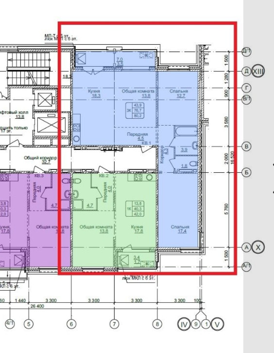 Общая площадь 76.7 м2