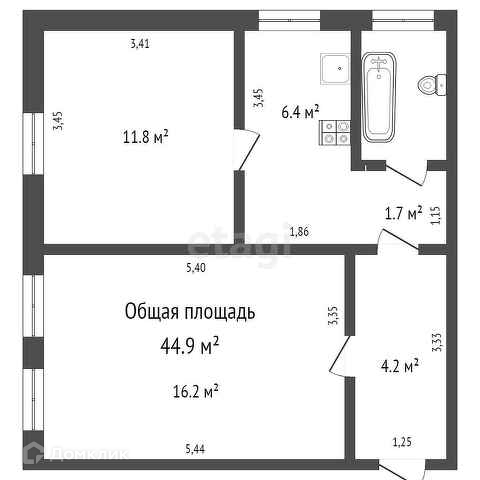 Общая площадь 44.9 м2