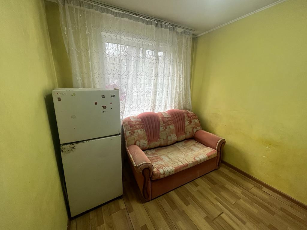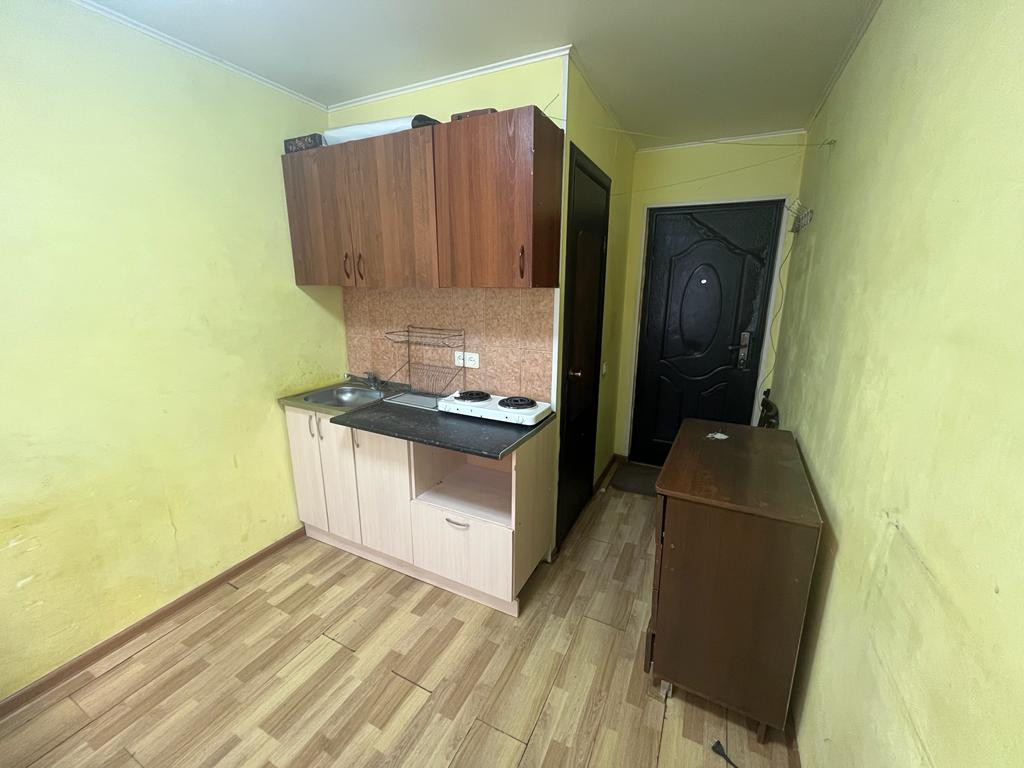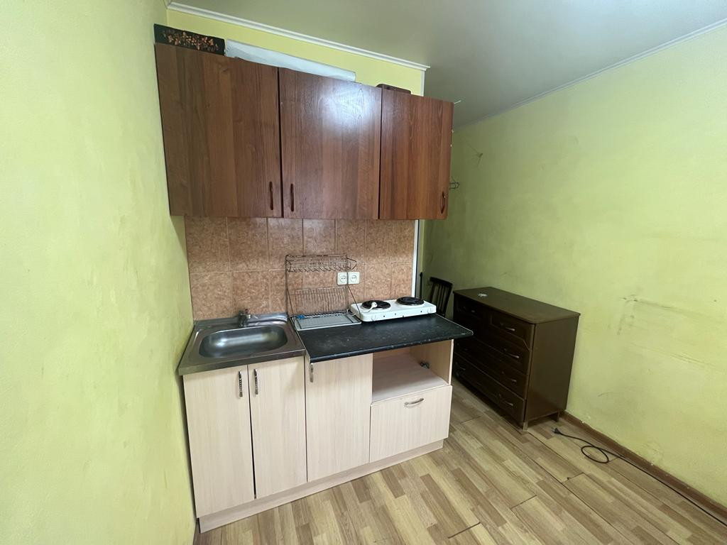 Квартира студия на первом этаже, состояние обычное, свой санузел, в секции 4 комнаты, свой отдельный эл. счетчик на квартиру, хорошее расположение, остановка рядом.