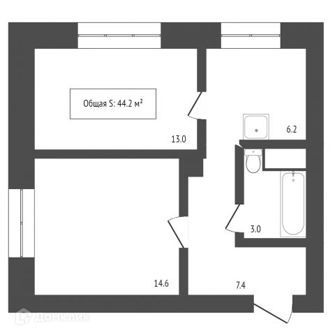 Общая площадь 43.7 м2