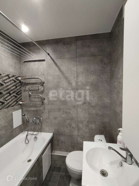 Натяжные потолки, дорогой ламинат и обои, стильный кафель в санузле.