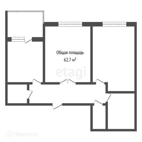 Общая площадь 62.7 м2