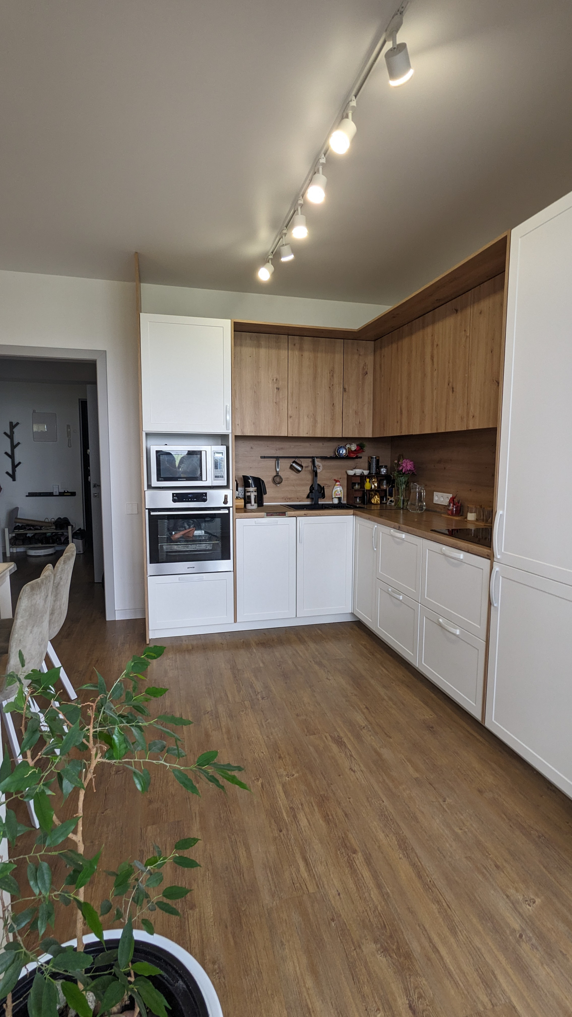 На кухне остаётся мебель, из техники - встроенный холодильник, варочная поверхность, посудомоечная машина.