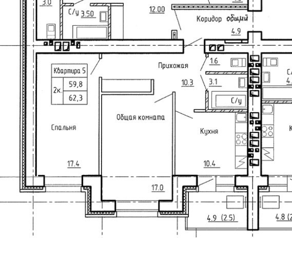 Общая площадь 62 м2