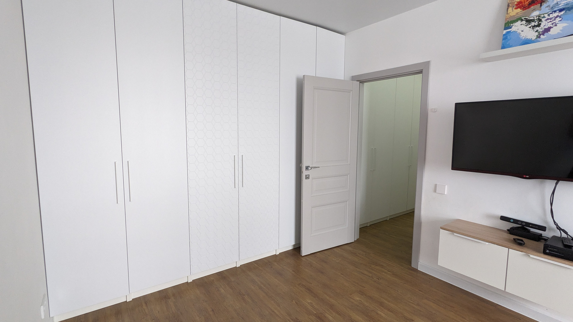 Большой шкаф в спальне во всю стену.
