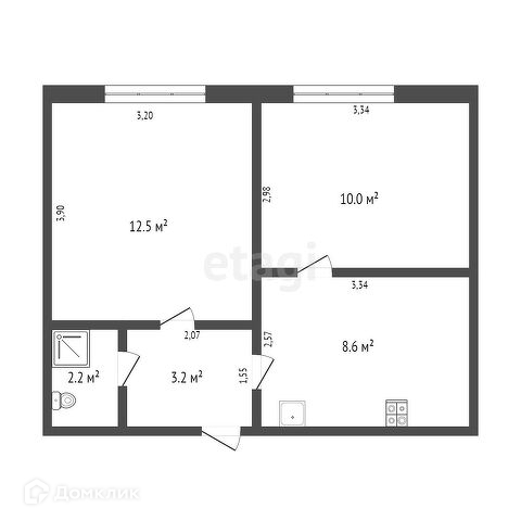 Площадь кухни 8.6 м2