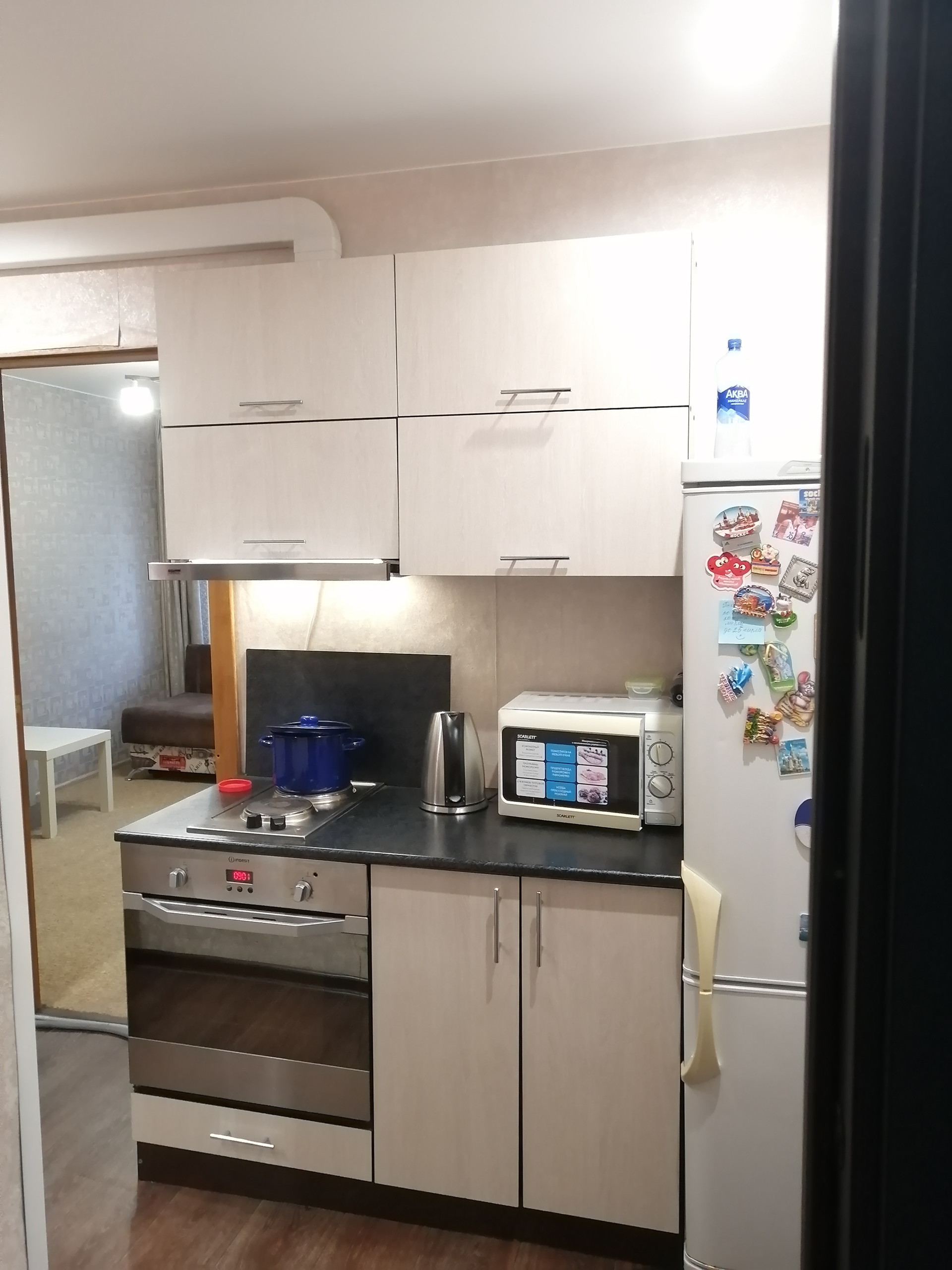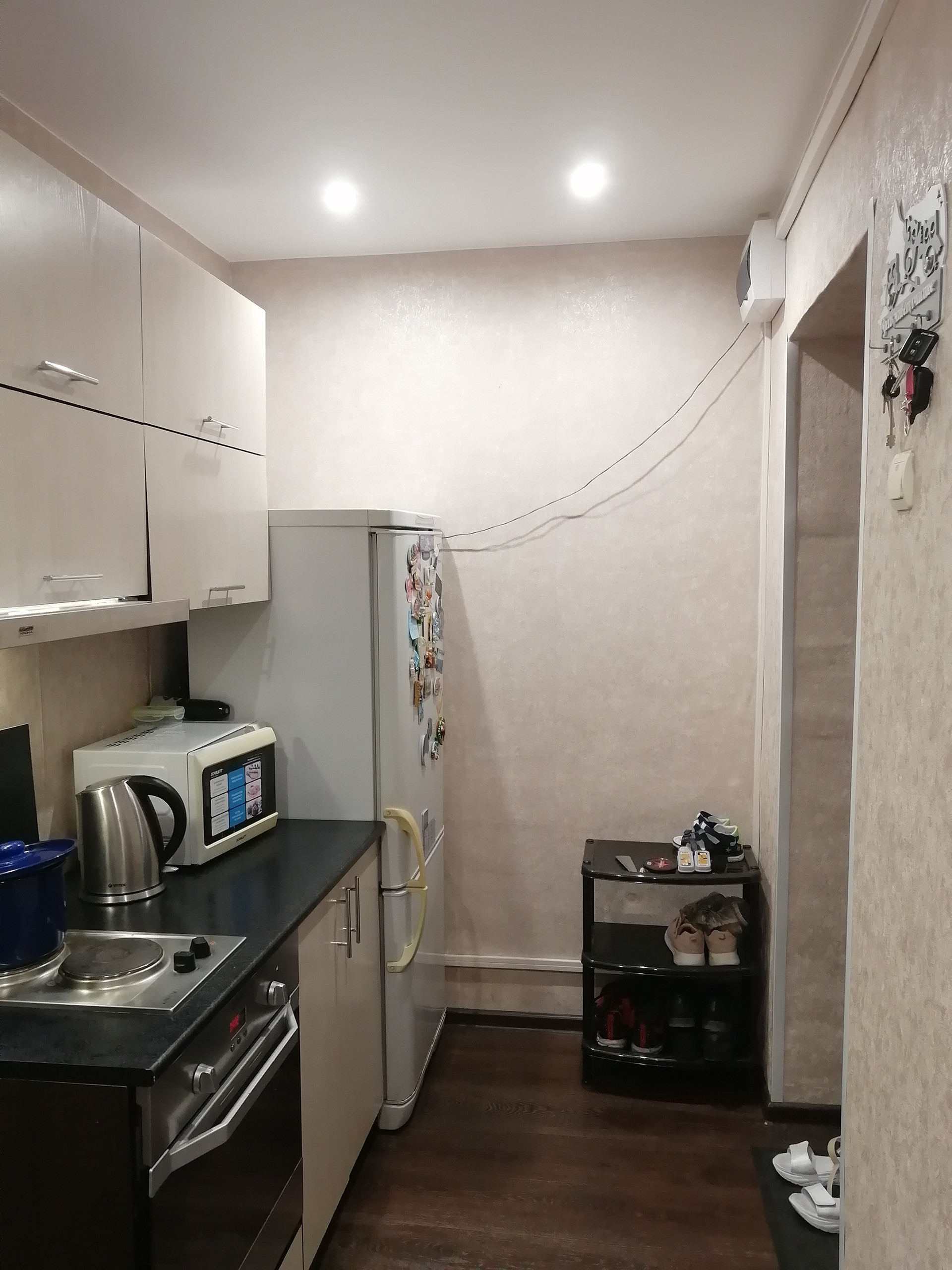 Продаю уютную кухню-прихожую, по документам двухкомнатная квартира. Ремонт косметический. Окна пластиковые. Потолки натяжные во всей квартире.