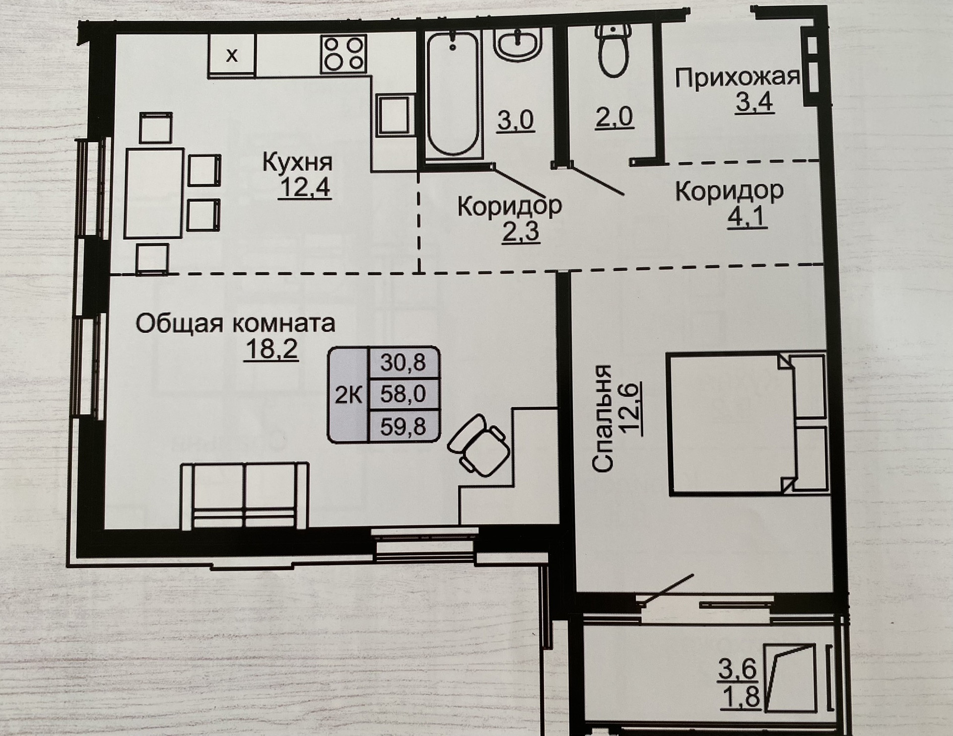 Общая площадь 59.7 м2