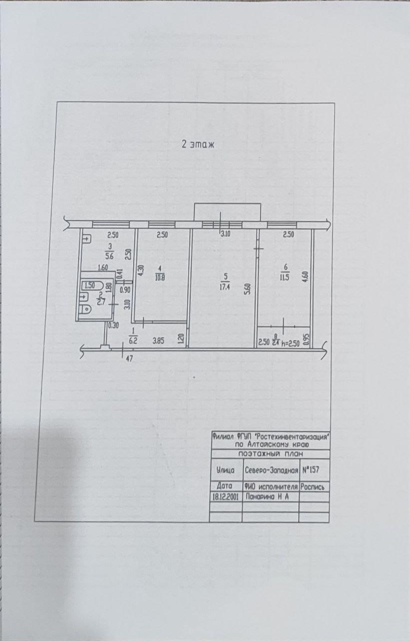 3-комнатная квартира, 57.4 м2, этаж 2 / 5, на продажу в Барнауле, Северо-Западная улица, 157