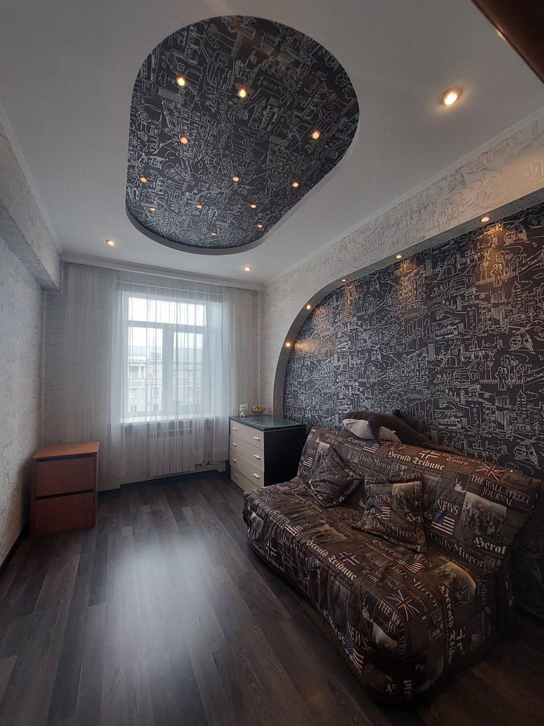 Хорошее состояние, 5 комнат все изолированные, балкон застеклен, есть еще маленький, французский балкончик под цветник, 2 сан.узла, кафель, ламинат, встроенная мебель. Самый центр города, а значит вся инфраструктура в шаговой доступности: дет.сад, школа, мсгазины, о тсноваи, ВУЗы.