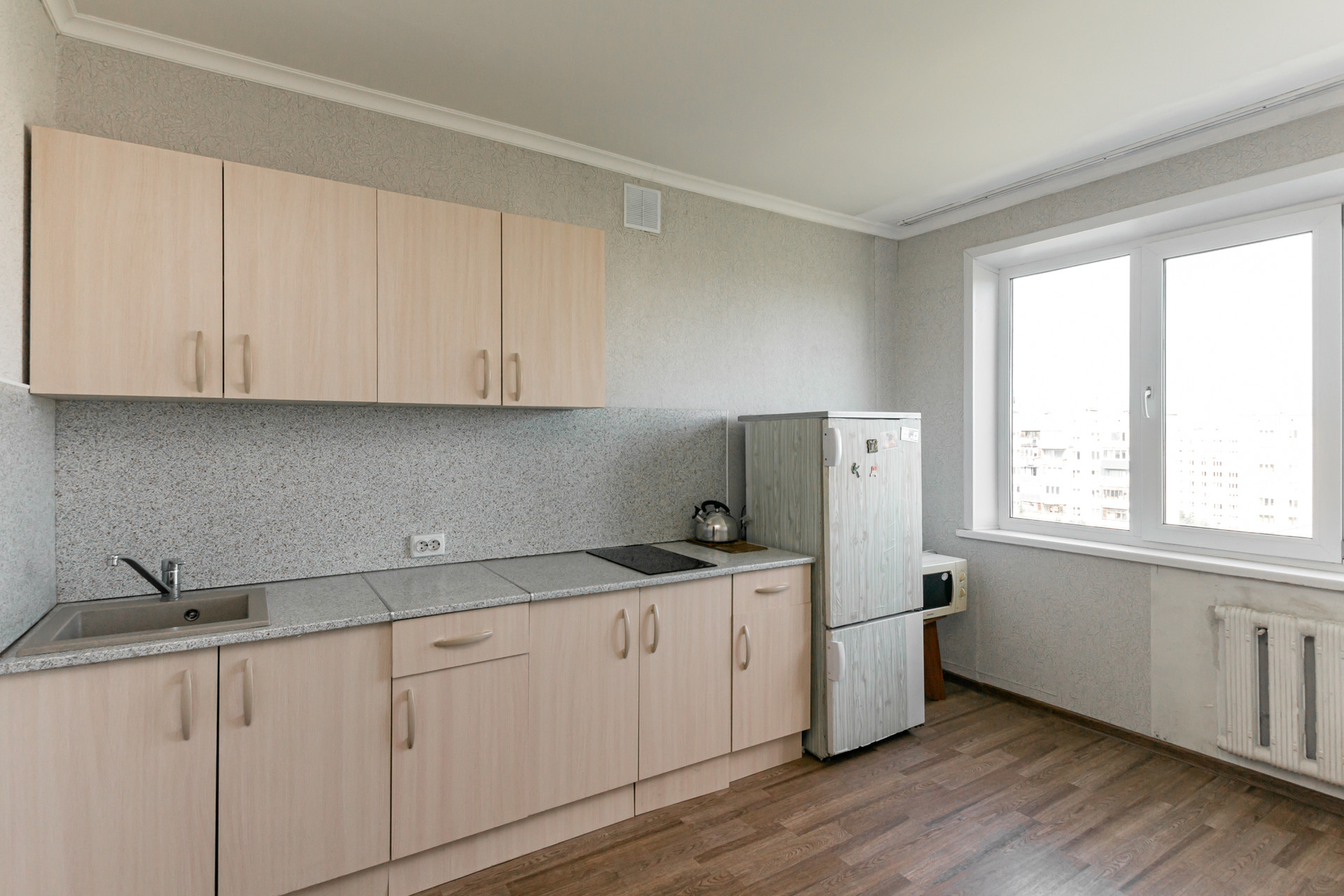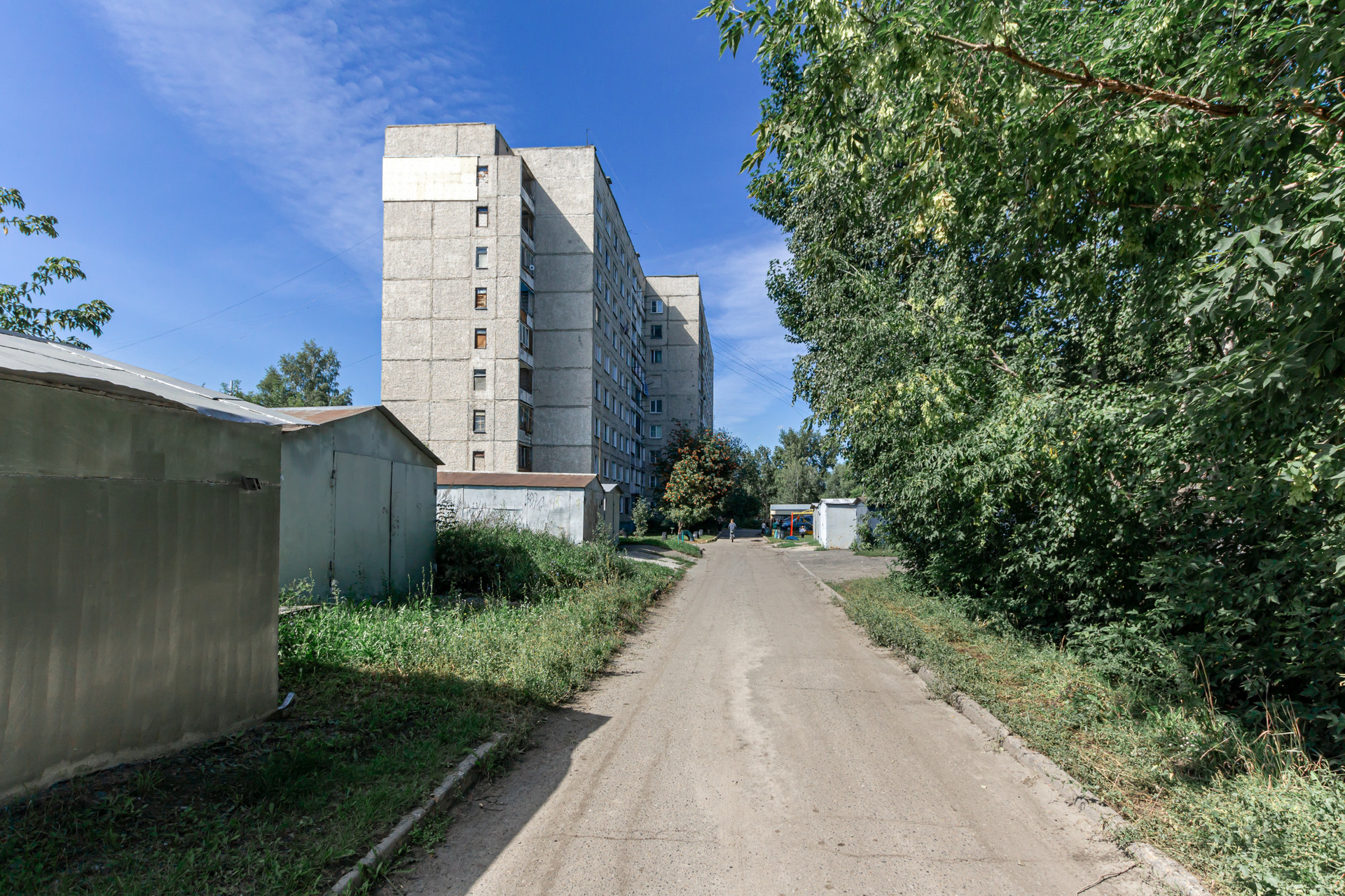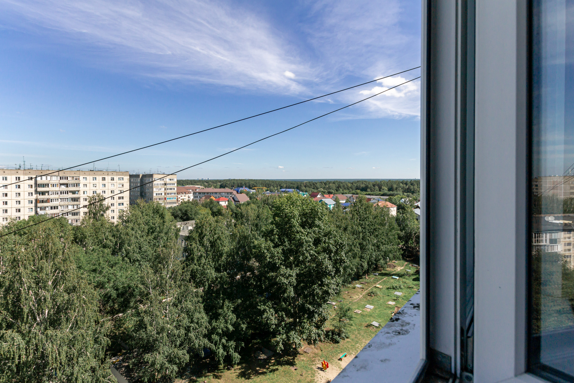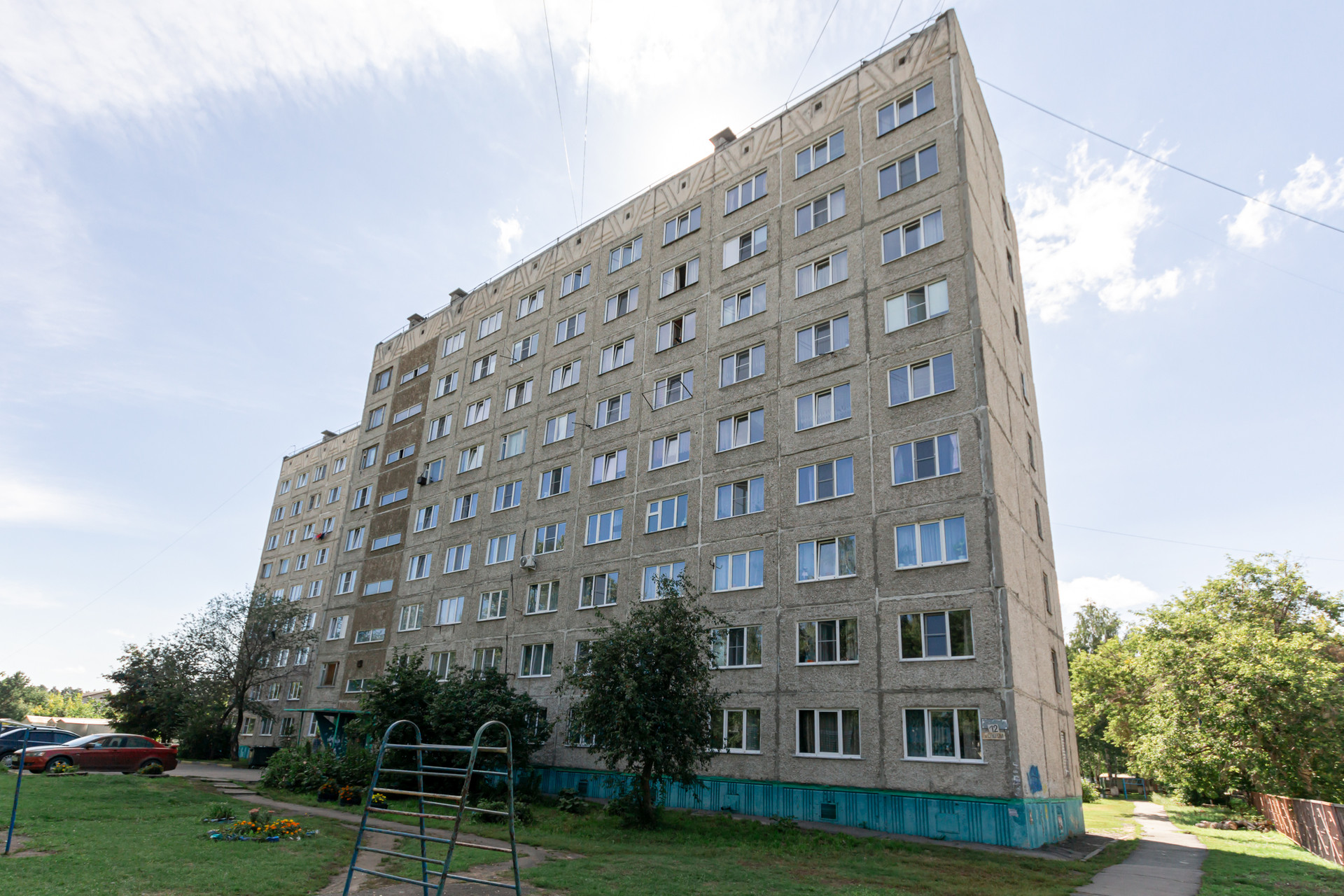 Дом расположен в спальном районе, зеленый ухоженный двор с детской площадкой и лавочками. Квартира на девятом этаже девятиэтажного дома, это значит что соседи сверху вас не побеспокоят. Крыша в хорошем состоянии, ничего не течет, лифт в доме исправно работает. Вид из окна хороший, не в соседний дом.