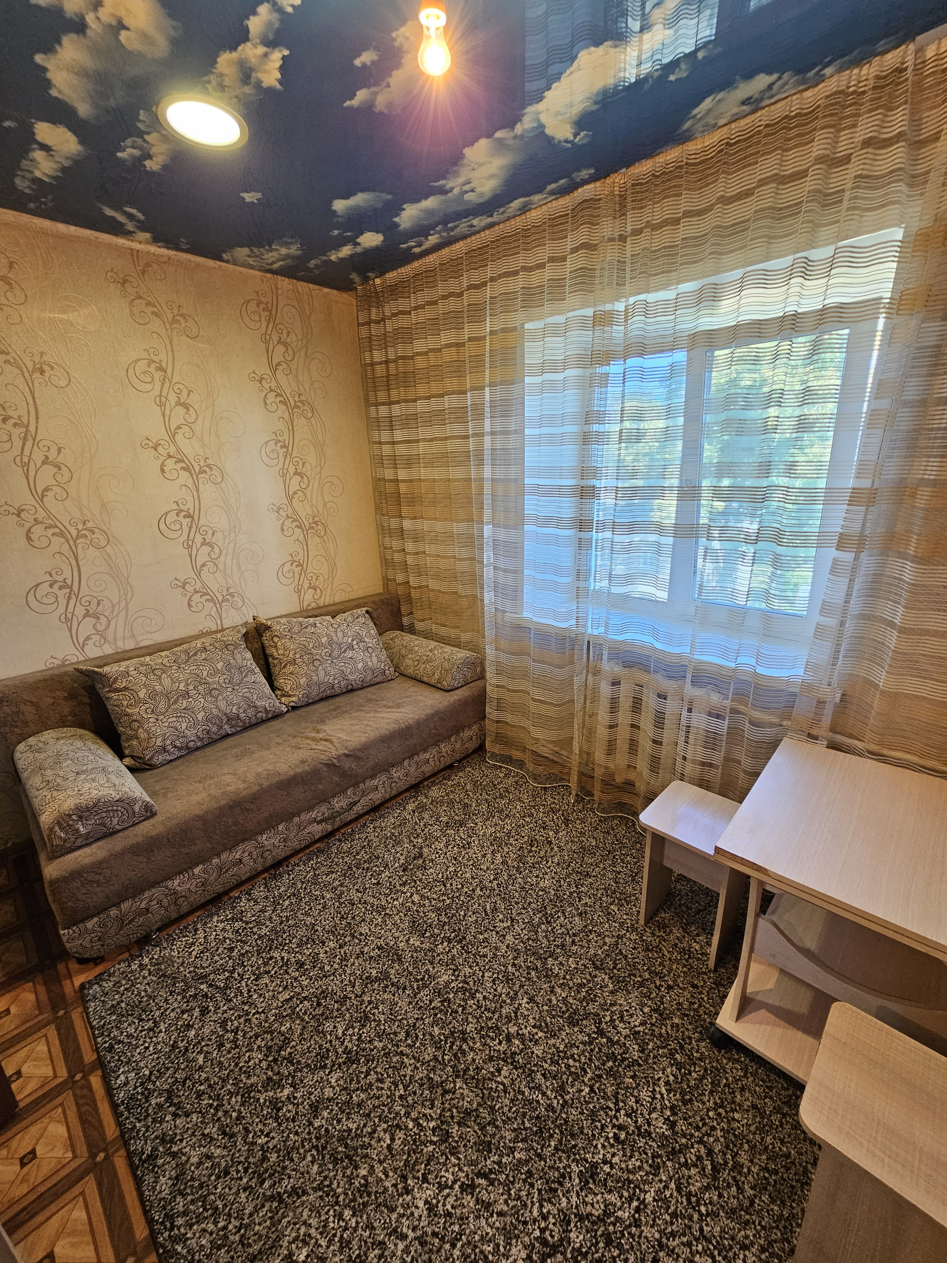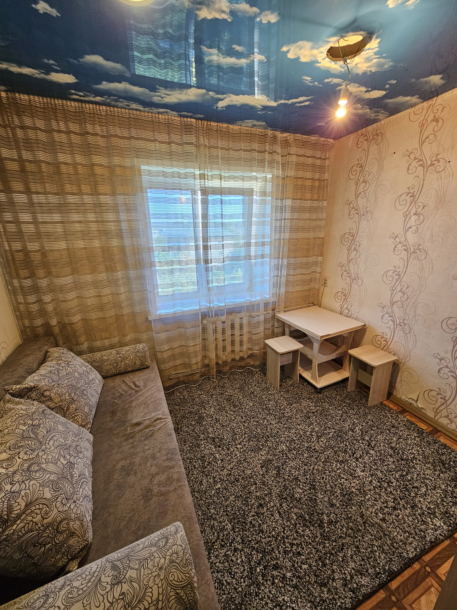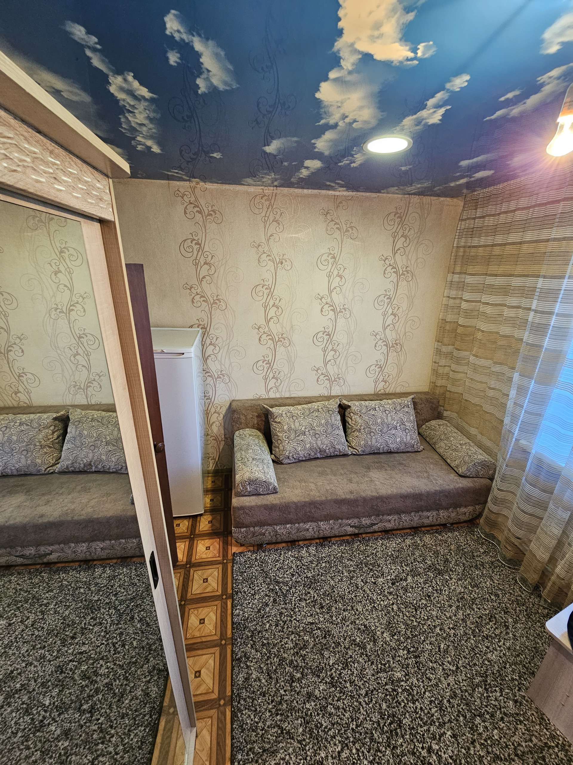 Из мебели остаётся: диван, шкаф, ковер, холодильник, кухонная мебель, варочная панель.