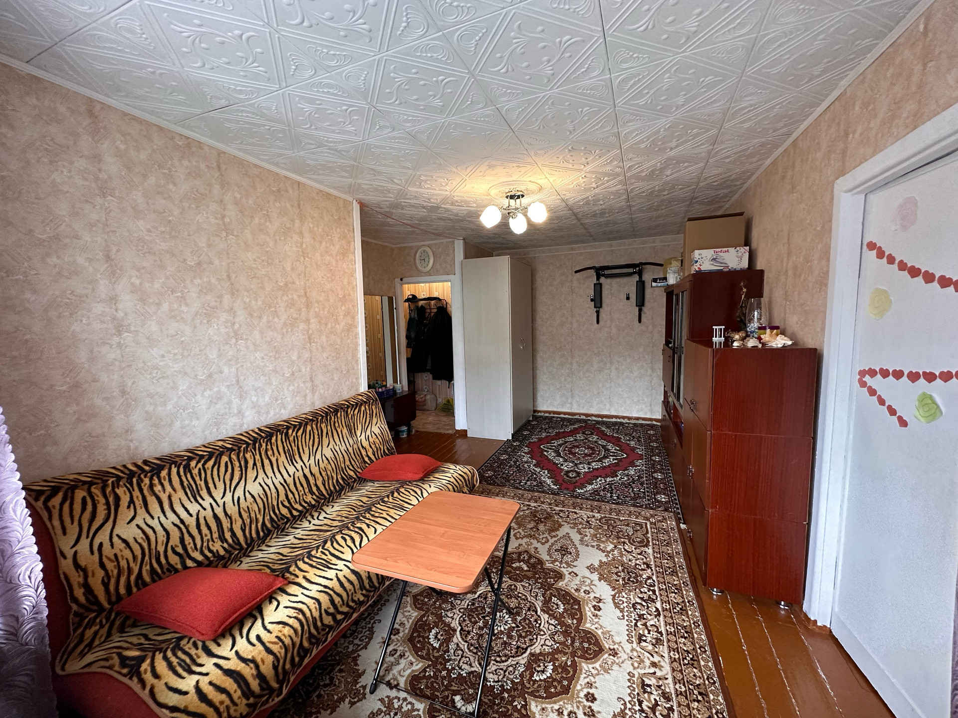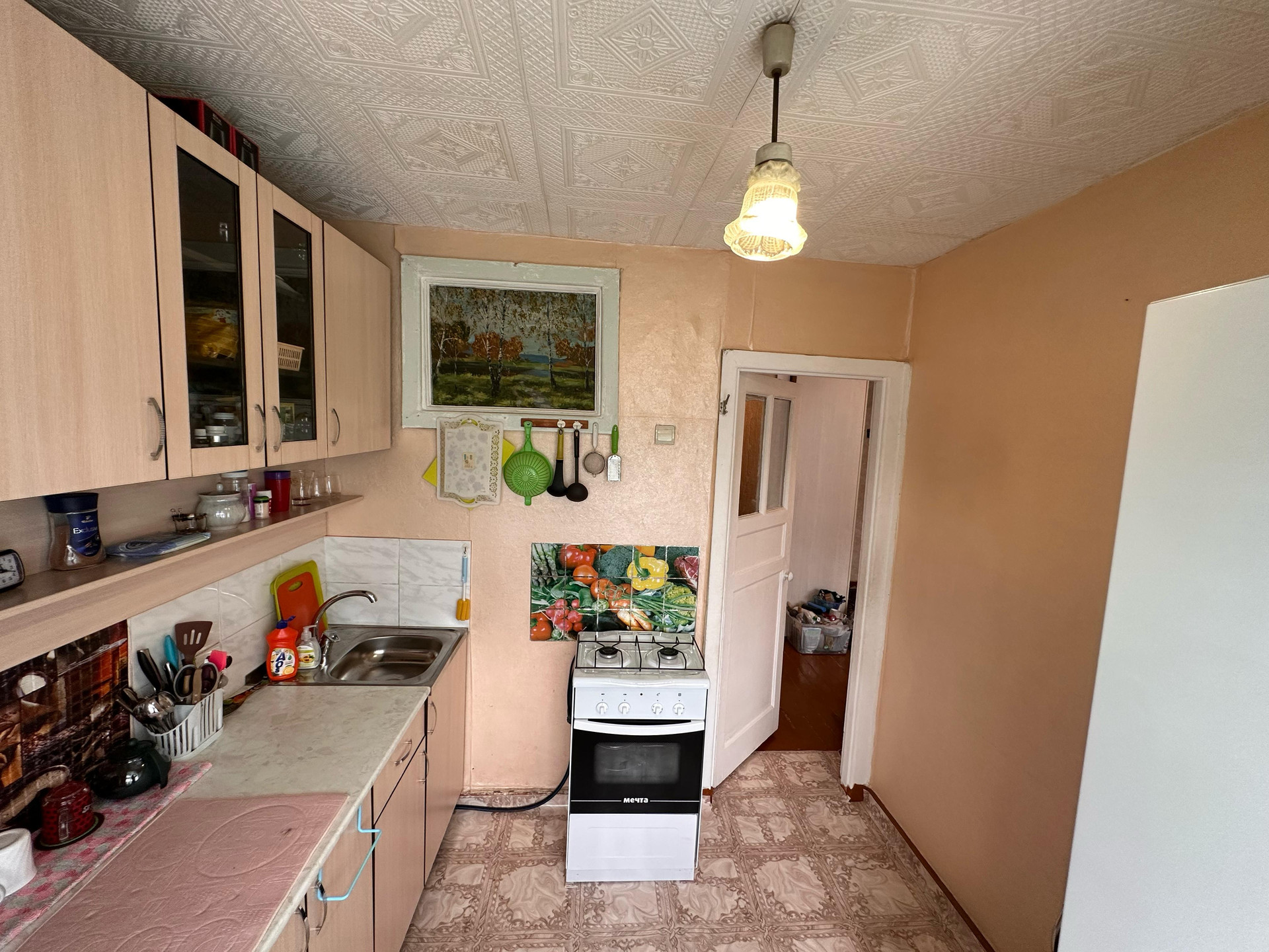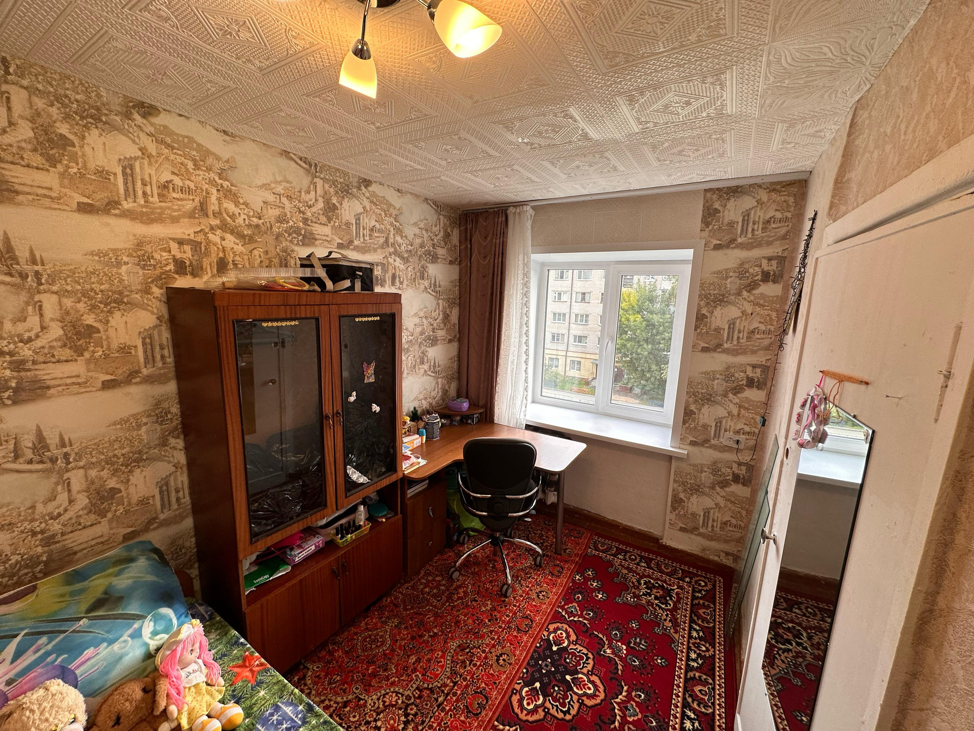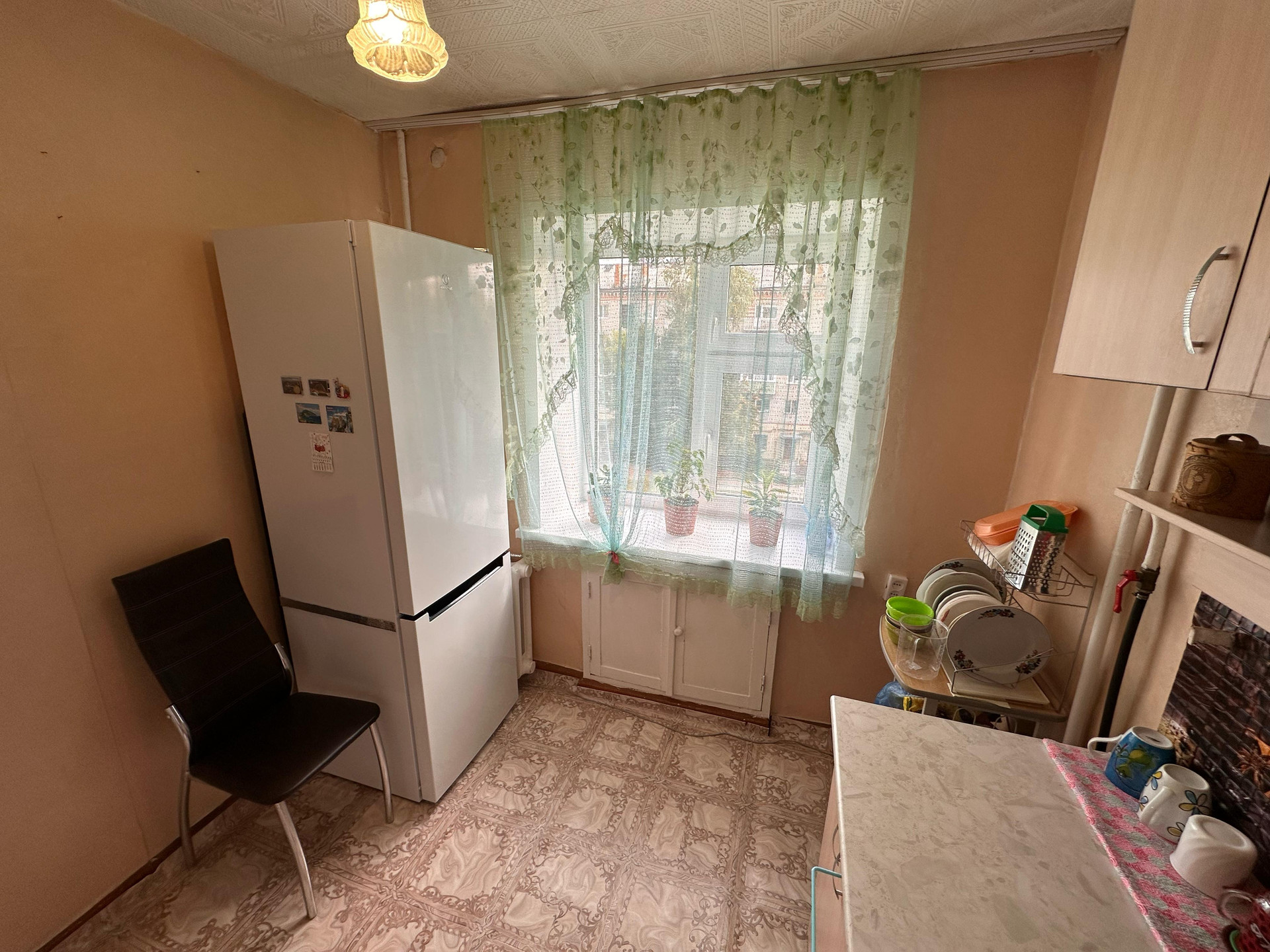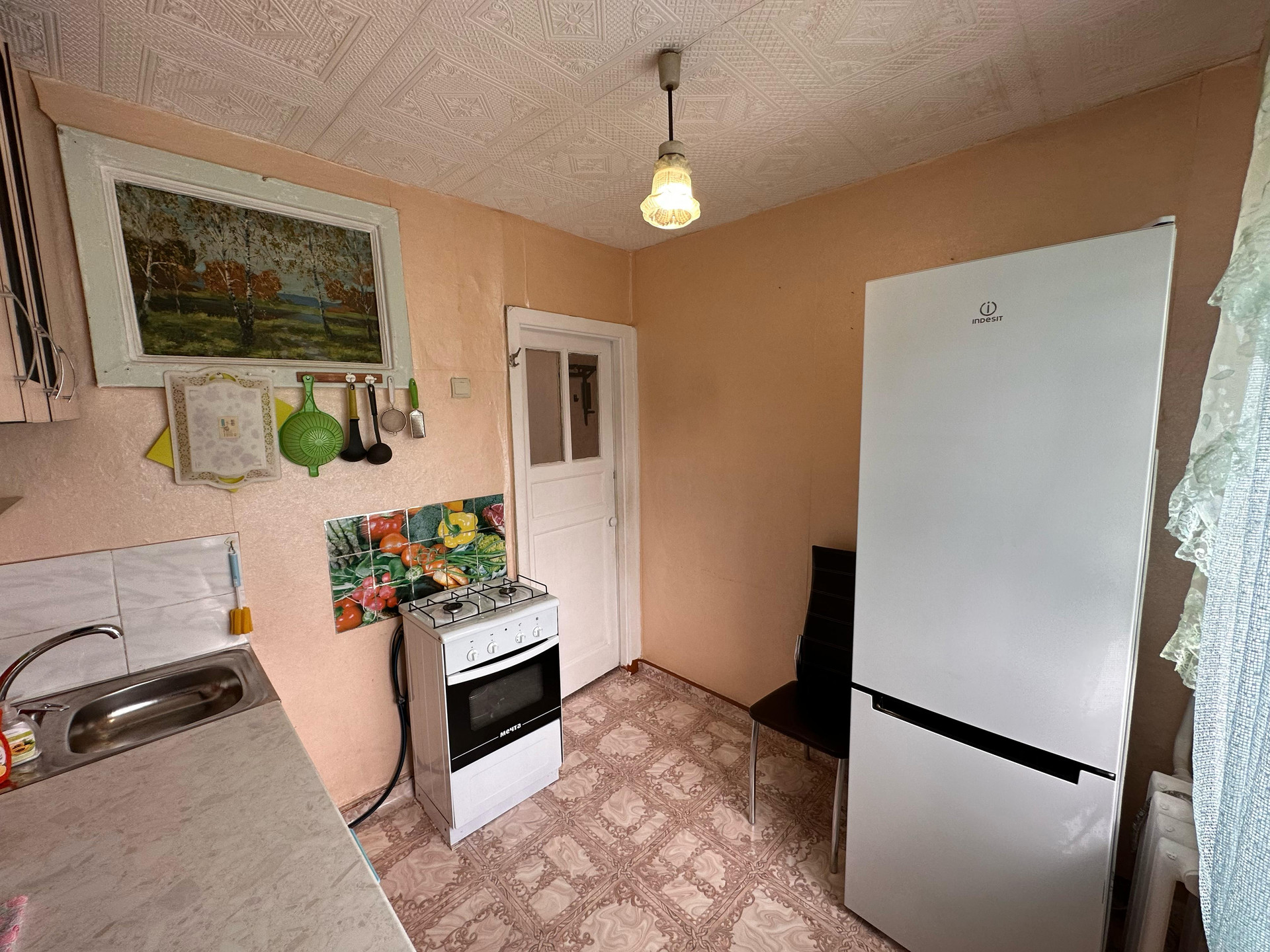 Дом расположен в спокойном районе. В квартире остаётся часть мебели (кухонный гарнитур, плита, диван, стенка, тумба), ремонт в среднем состоянии, заменили окна и откосы.