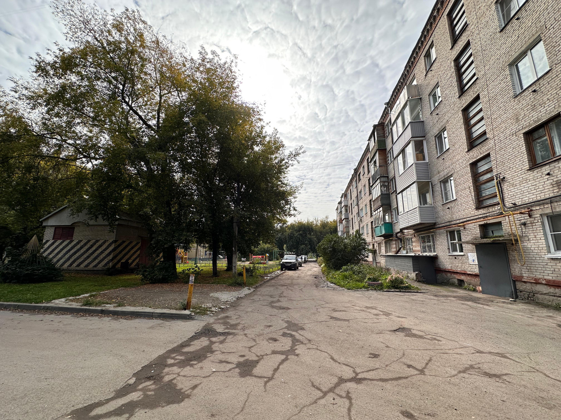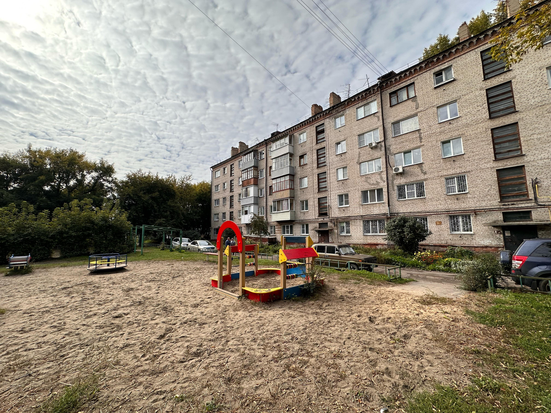 Зеленый ухоженный двор с новой детской площадкой. Рядом есть 3 детских садика (Детский сад №56, Детский сад №89, Золотой ключик).