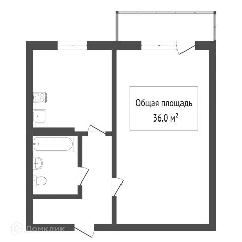 Общая площадь 36 м2