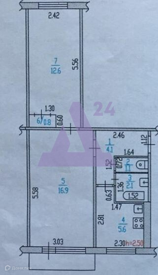2-комнатная квартира, 43 м2, этаж 5 / 5, на продажу в Барнауле, улица Георгиева, 21