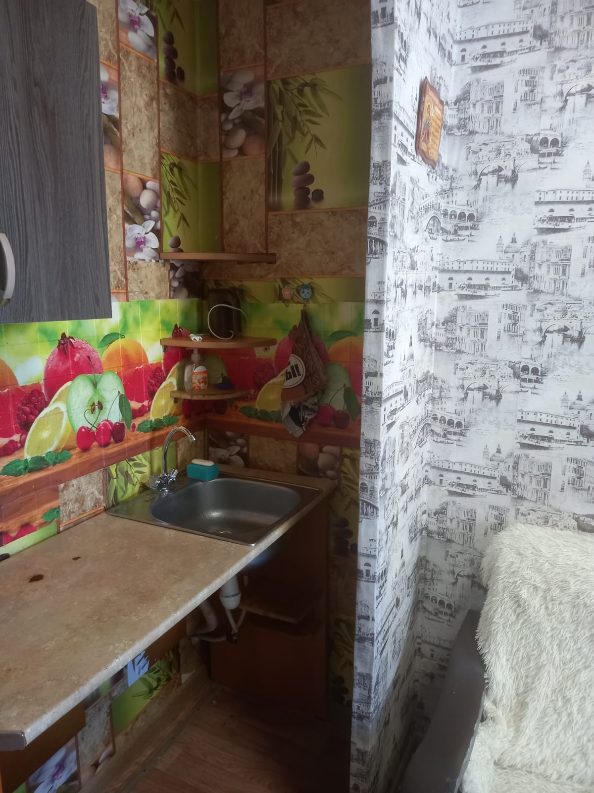 В квартире установлены счётчик электроэнергии и воды. Есть подводка под стиральную машинку. Двойная дверь. Чугунная батарея. В квартире остаётся диван и кухонный гарнитур. Одна из самых недорогих, именно квартир в самом перспективном районе. Вход с подъезда, не секция.