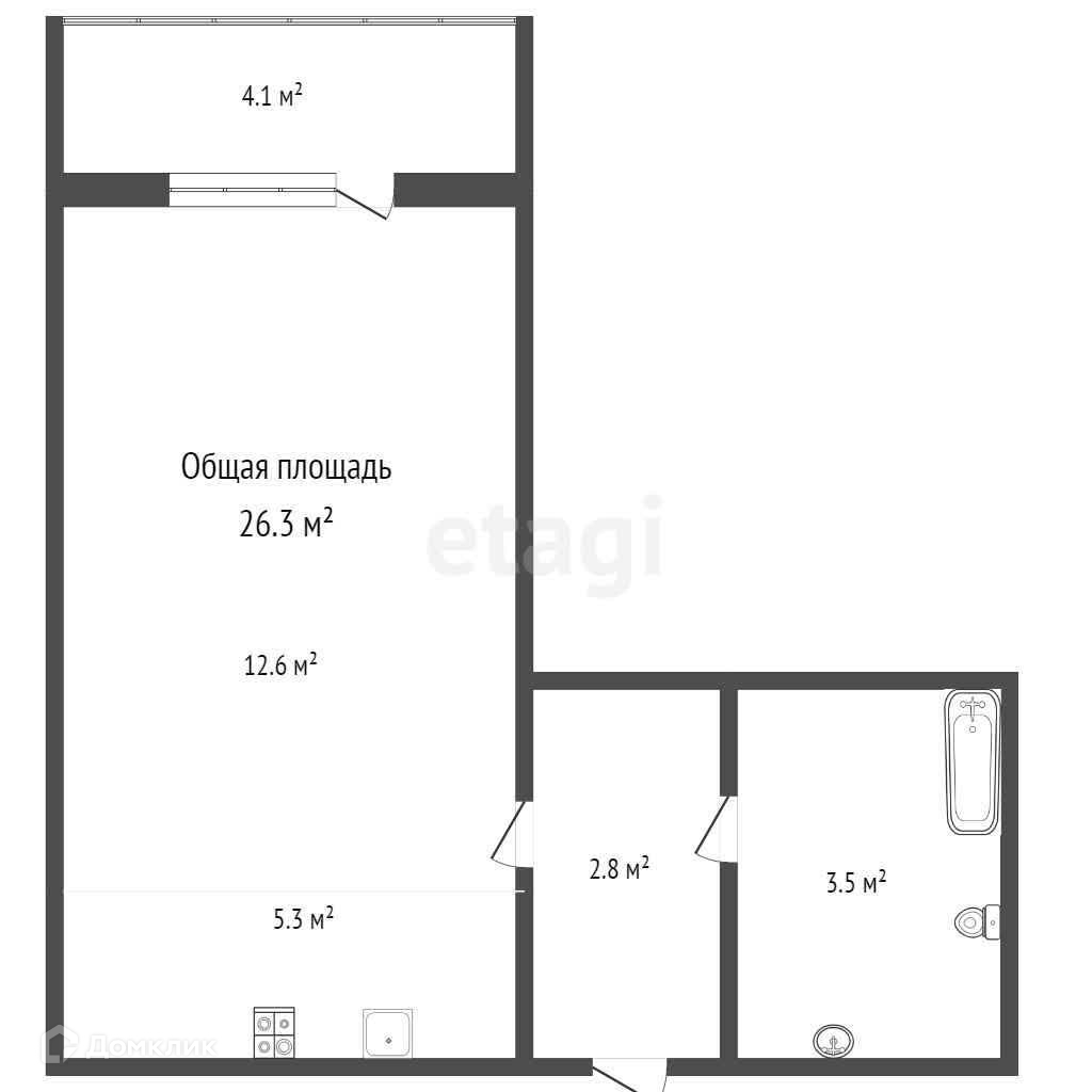 Общая площадь 26.3 м2