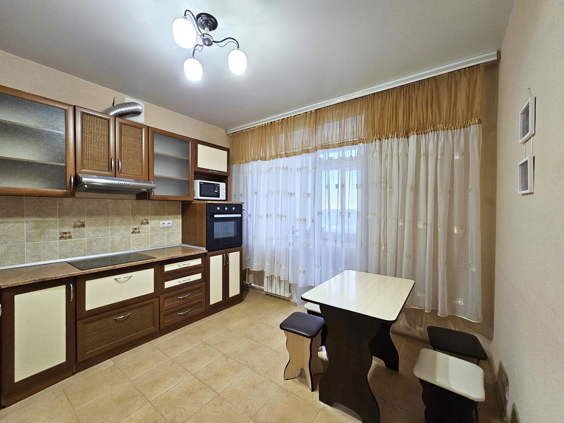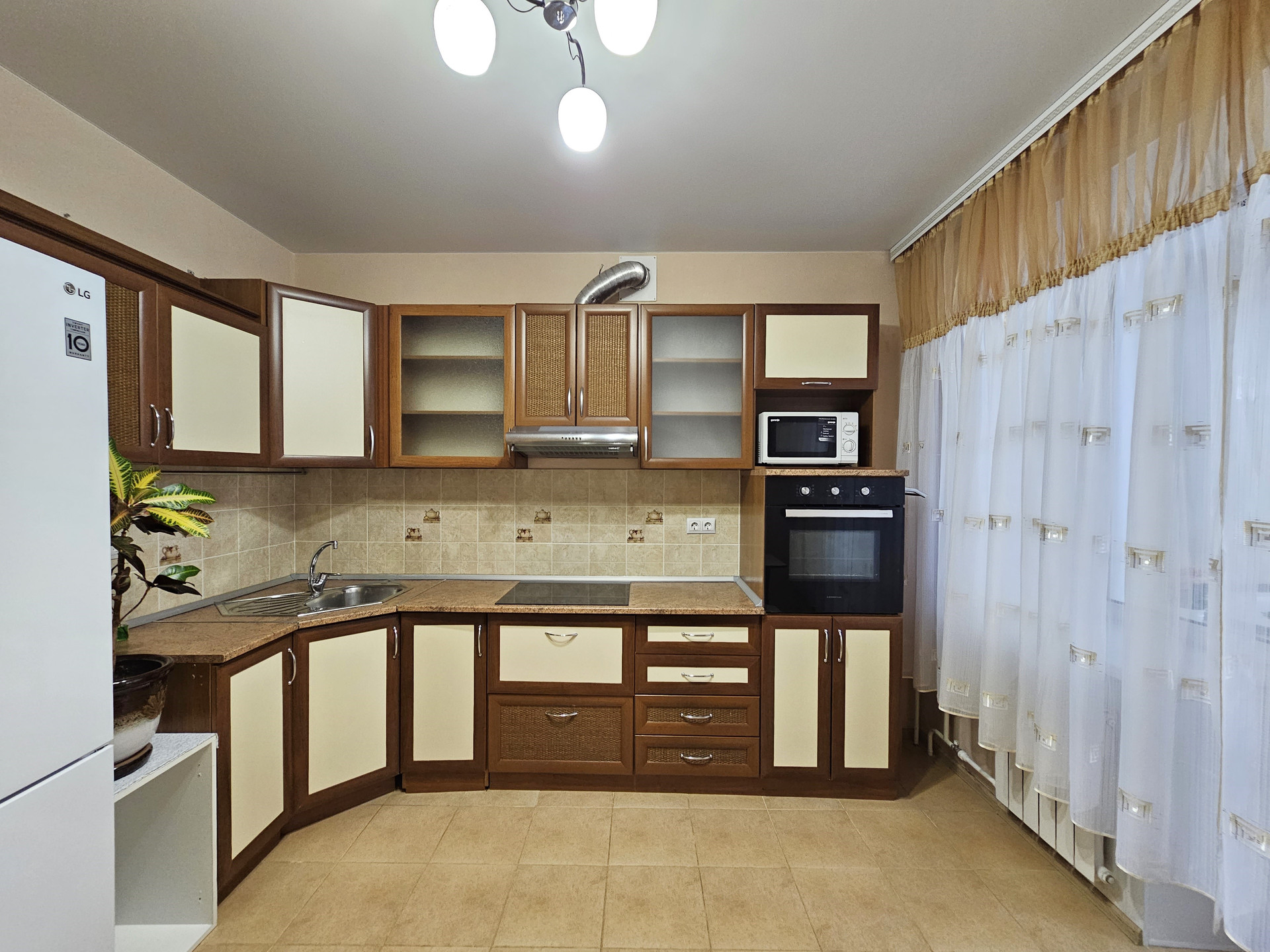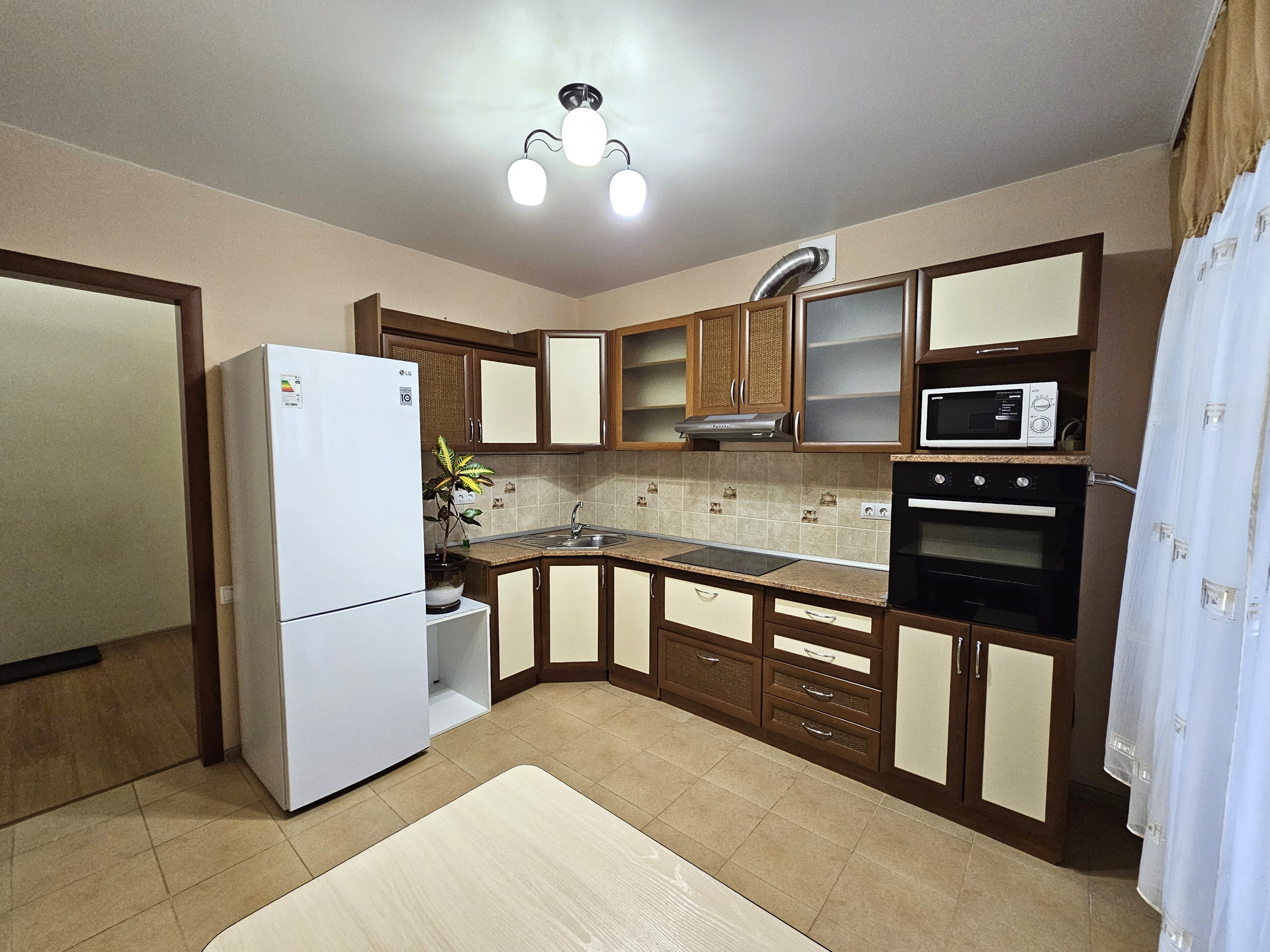 — Все что вы видите на фото остается и входит в стоимость. Комплектация и оборудование: кухонный гарнитур со-всей необходимой бытовой техникой, новый 2х камерный холодильник с технологией Nо-Frоst "LG", обеденная зона, 2х местный раскладной диван, вместительный шкаф в комнате, наполнение гардеробной, шкаф в прихожей, стиральная машинка, кондиционер, шторы и тюли, люстры и светильники, ванная мебель.