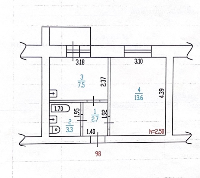 Общая площадь 27.7 м2