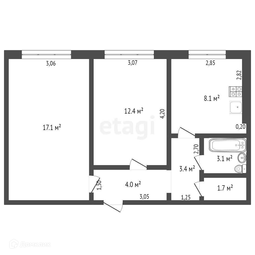 Общая площадь 50.3 м2