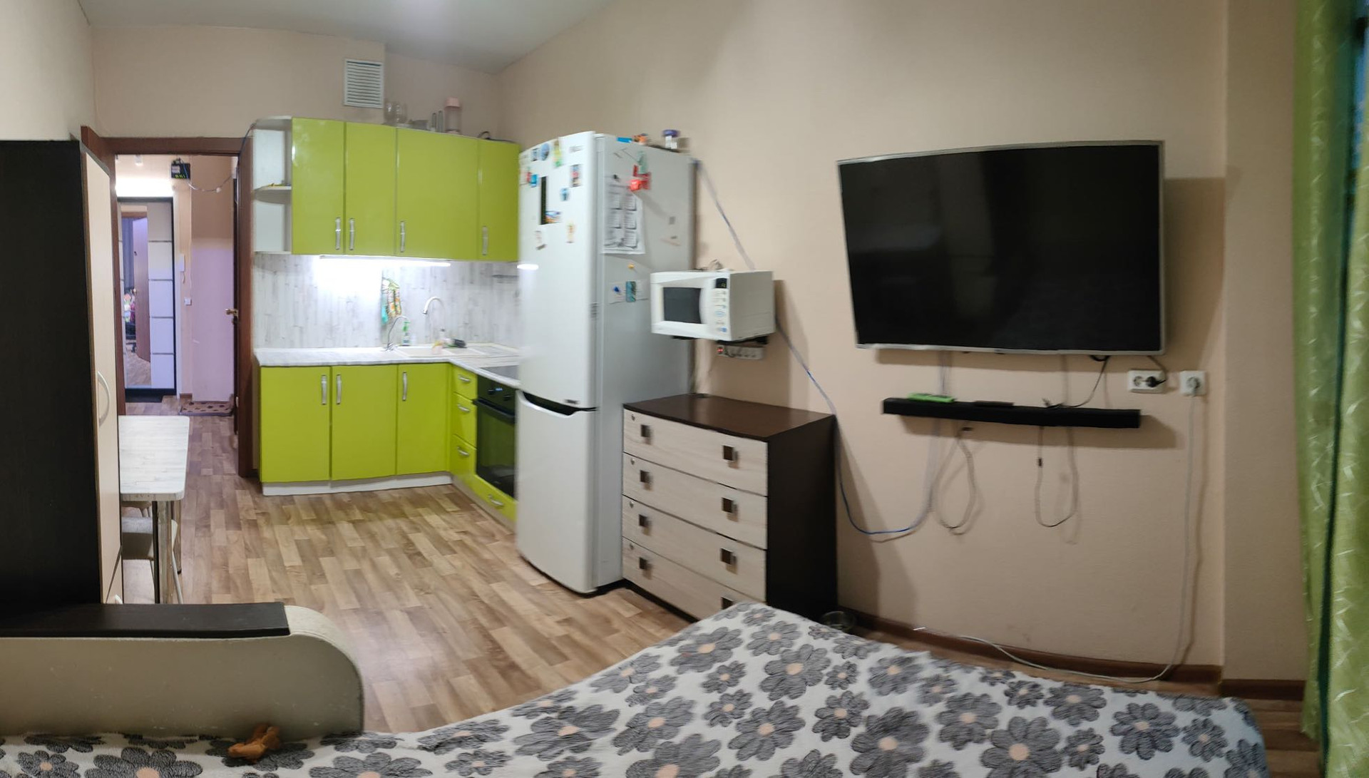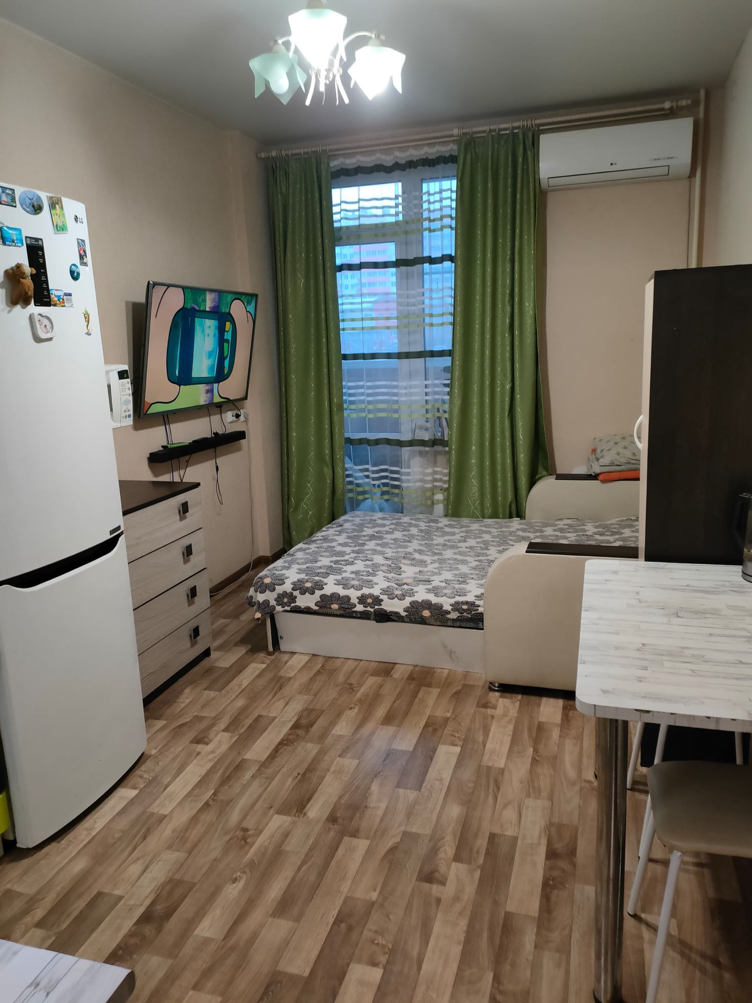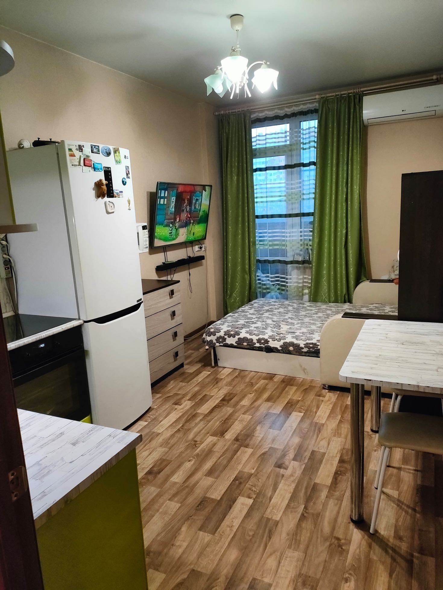 Приятный бонус от собственника- В квартире останется кухонный гарнитур , варочная панель , кондиционер, стол и вместительный шкаф- купе