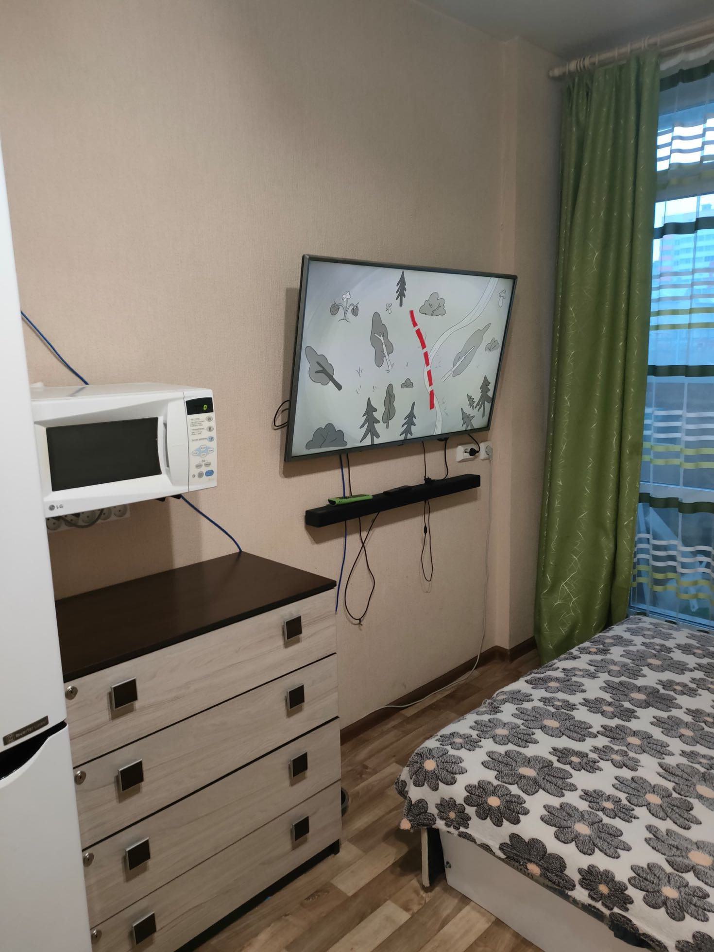 В квартире всегда Очень светло и уютно . Высокий цоколь .