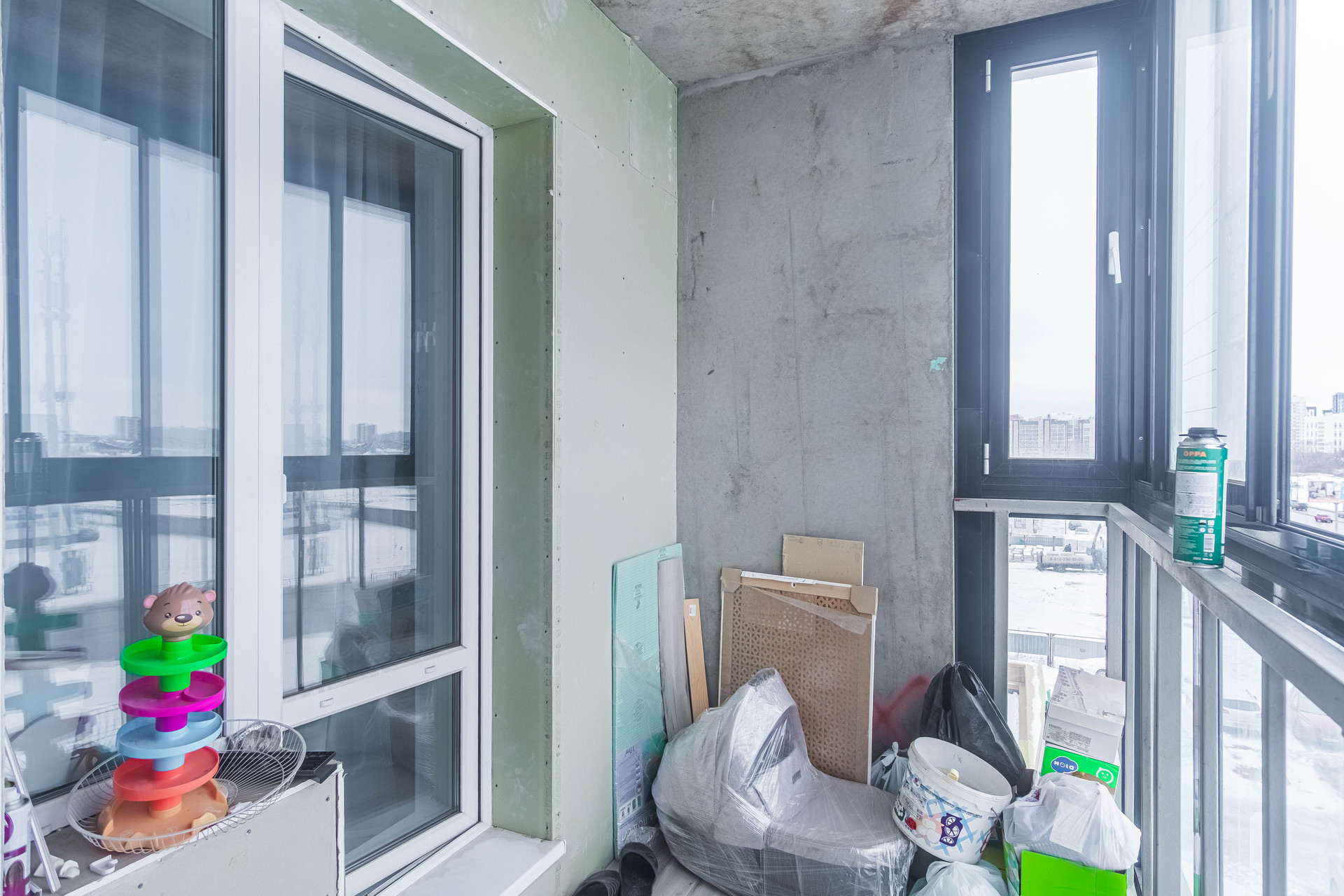 • большая лоджия с витражным остеклением,