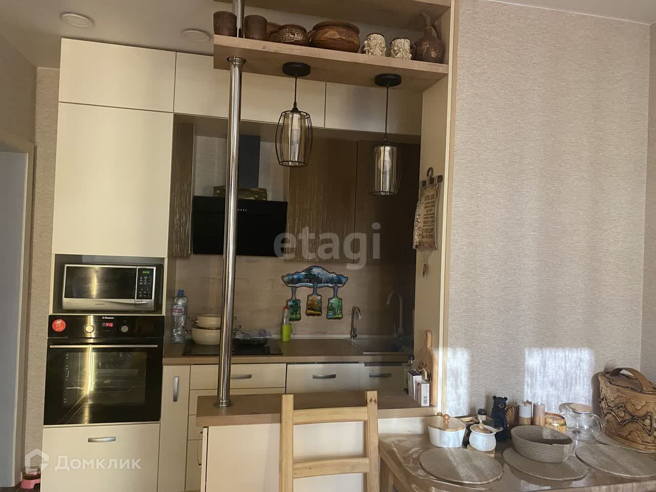 Имеются 1 просторный балкон. совмещенный санузел с отделкой кафелем. Натяжной потолок. Встроенная точечная подсветка в прихожей и кухне, в стоимость входит вся мебель и бытовая техника , большая кухня -Студия с камином , согрет вам осенними вечерами .
