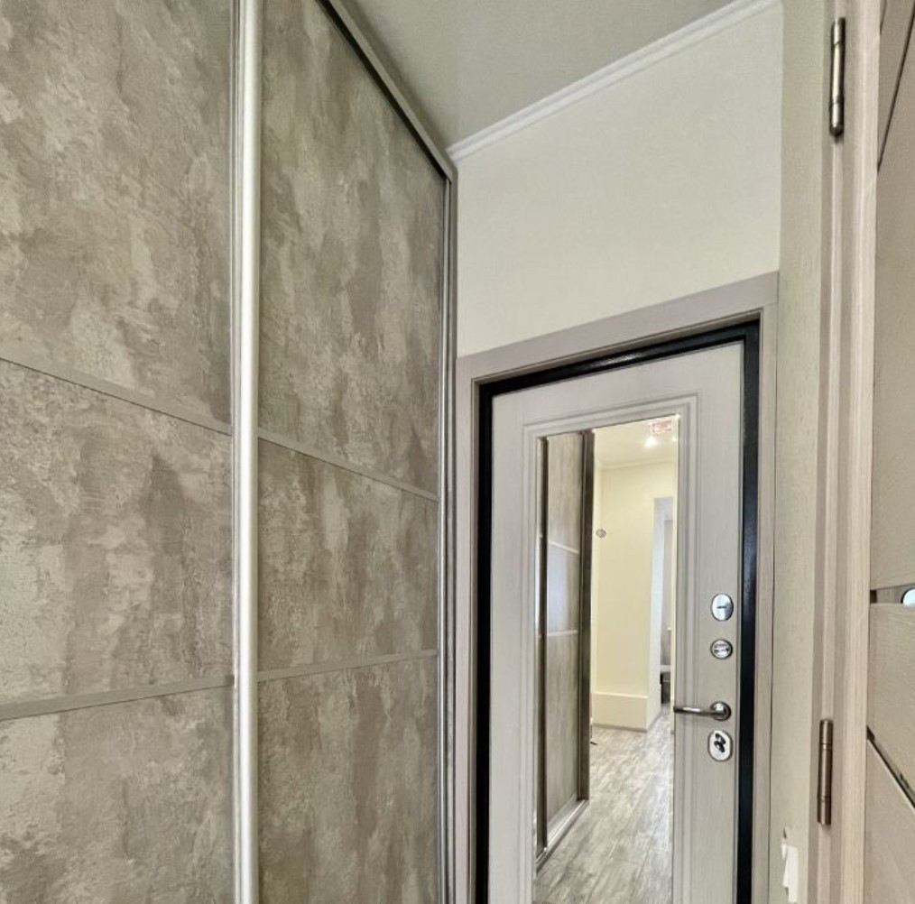 Хорошая входная дверь с зеркалом, с шумоизоляцией.