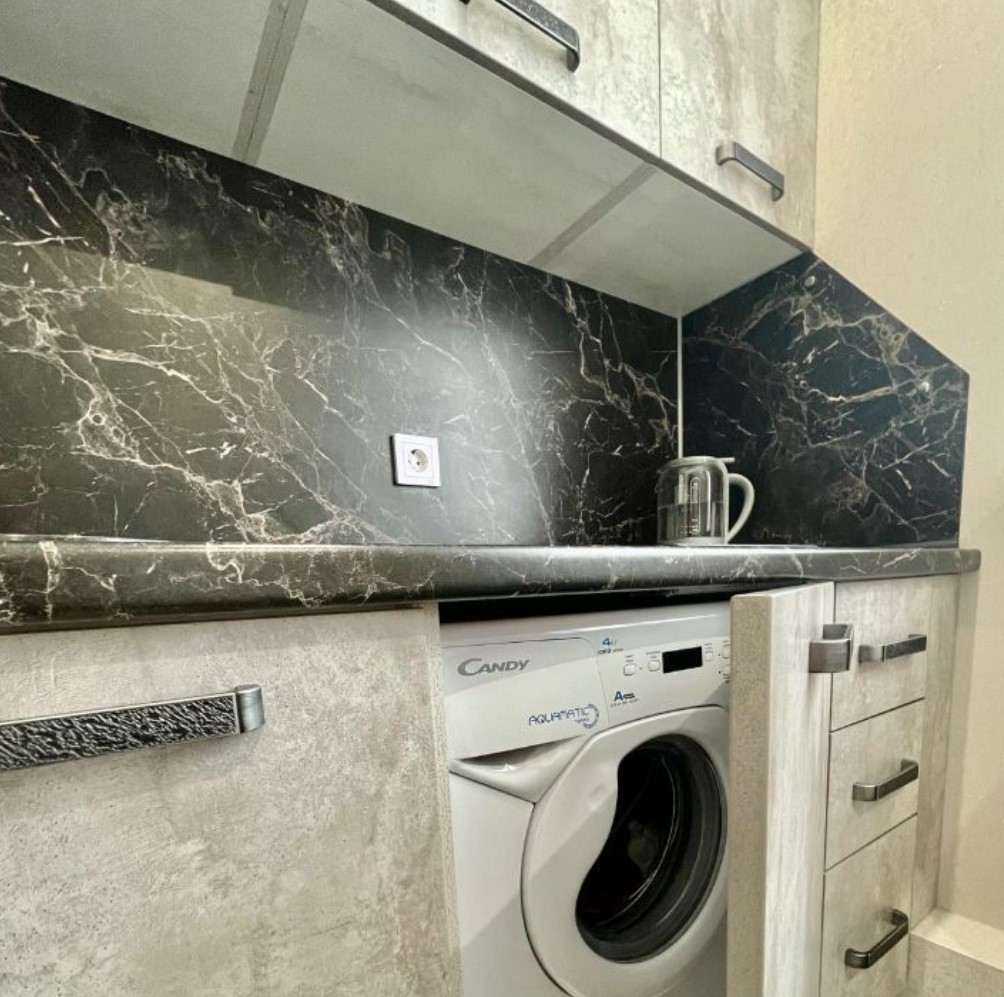 Выделенная кухонная зона. Места для хранения посуды.