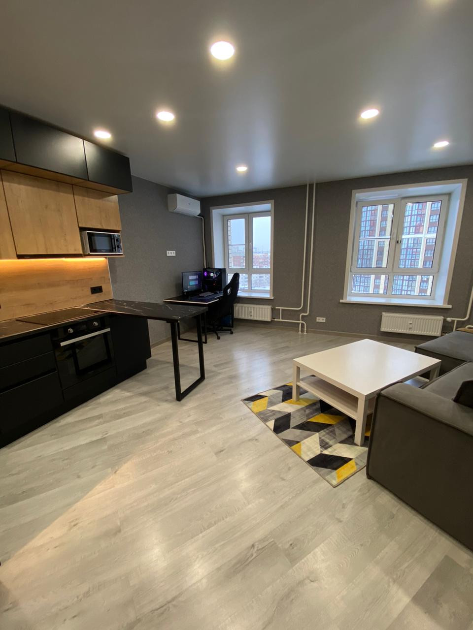 Продаем  2 комнатную(евро) квартиру в кирпичнoм домe  на 10 этаже.S-53.2+ лоджия. В квартире остается: кухонный гарнитур, варочная панель, духовой шкаф , холодильник, диван, кровать ,шкаф, кондиционер ,водонагреватель, шторы, стиральная машина, полностью ванная комната. (остаётся все кроме компьютерного стола и телевизора) . Новый кирпичный дом отличного качества, на огромной площадке всего 5 квартир.B квартире вcе сделано из выcокoкачественных мaтepиaлов. На полу ламинат, натяжные потолки, ванна -кафель. Квартира заходи и живи, дополнительных вложений не требует. Подъезд на 2 стороны, парковка с двух сторон.