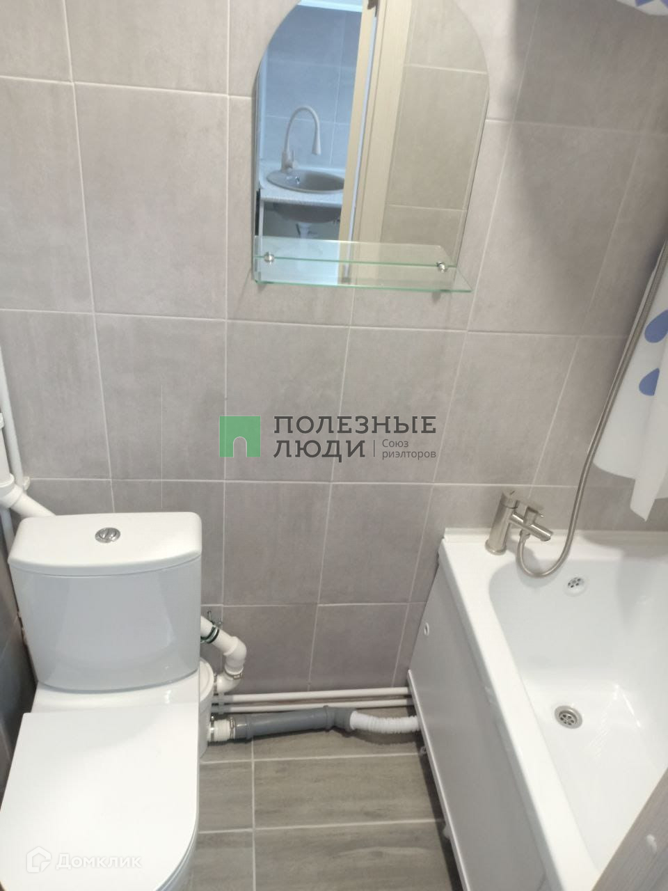 В комнате санузел с ванной