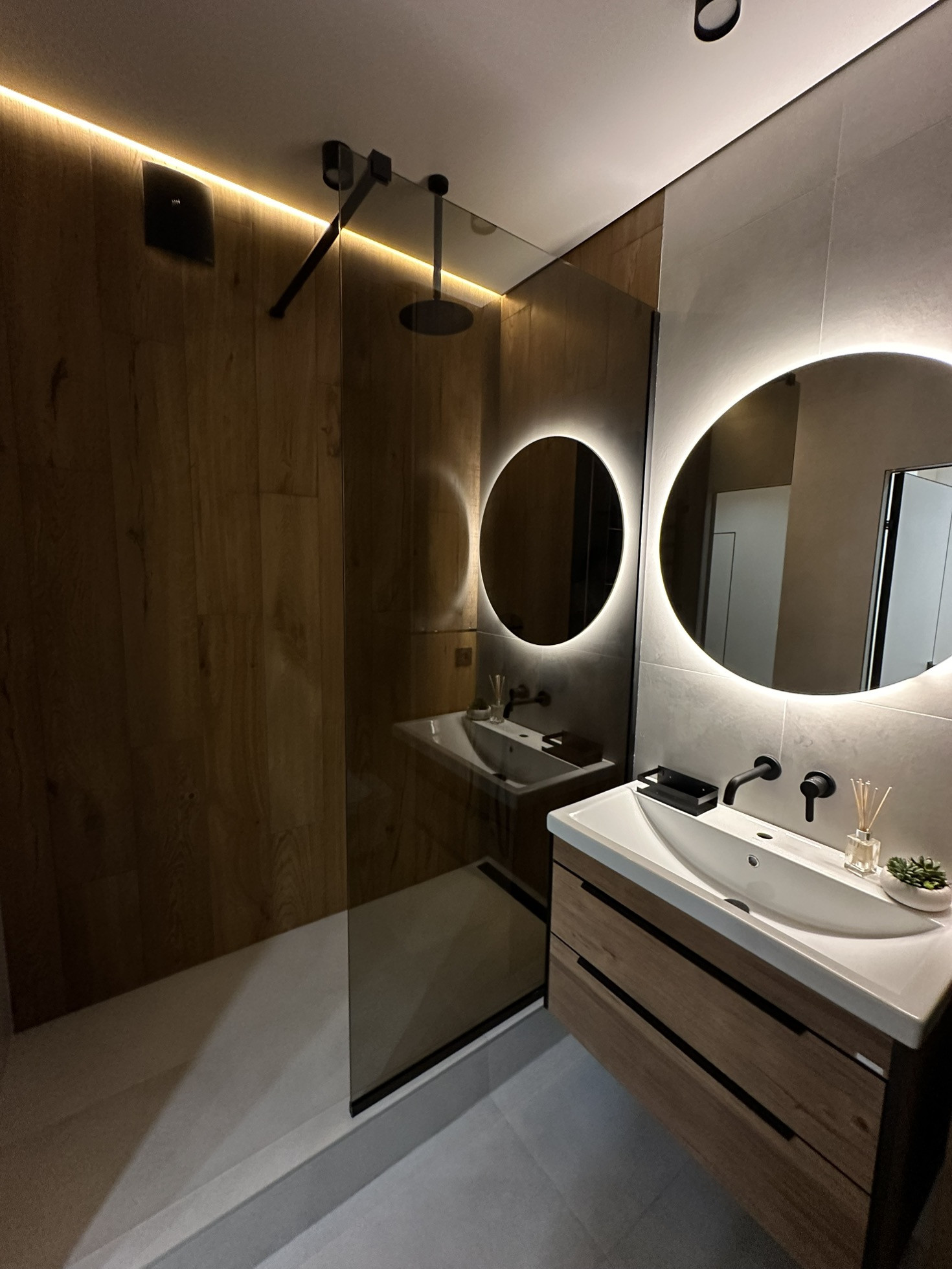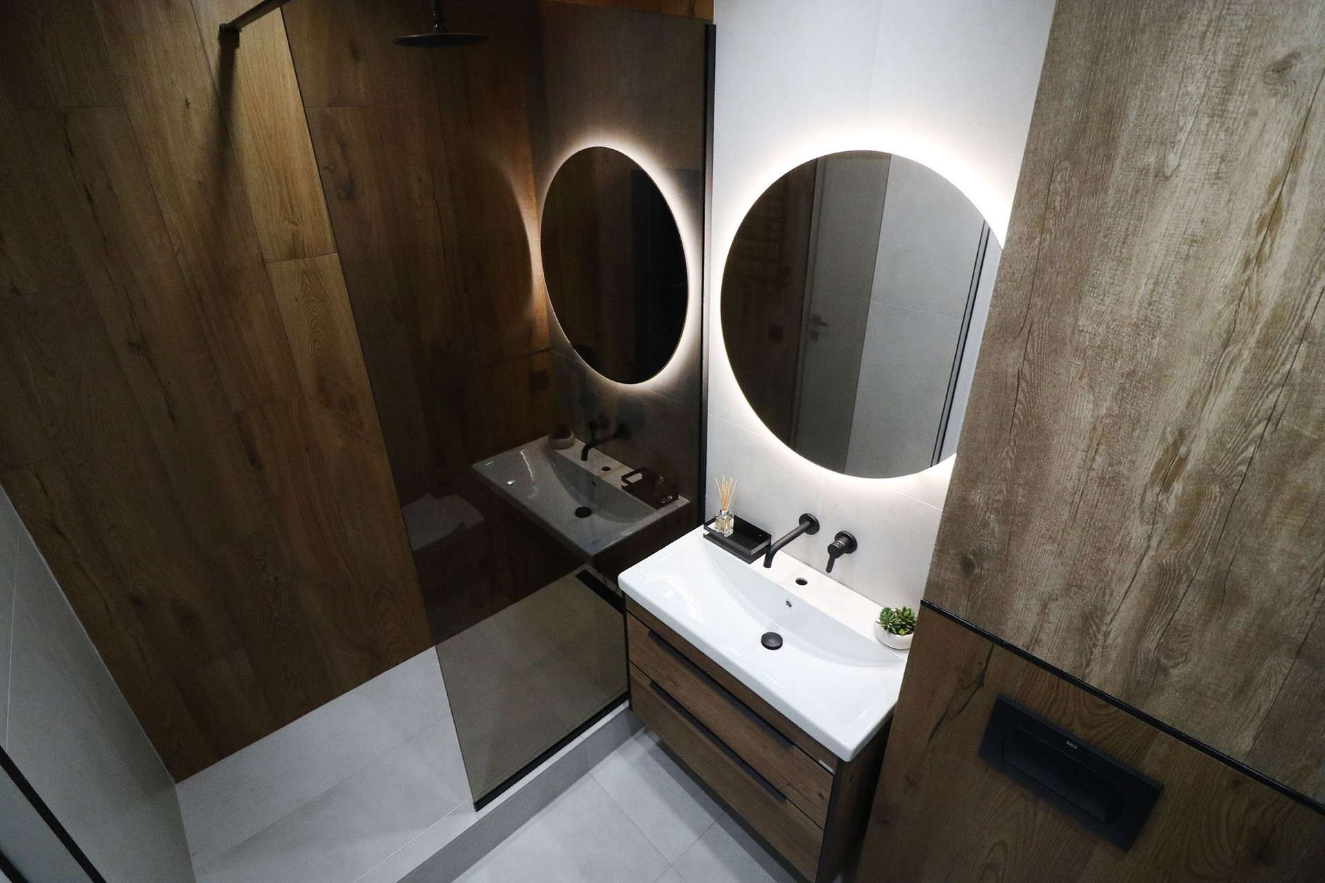 В сан узлах вся плитка итальянского производителя Italon - широкоформатная