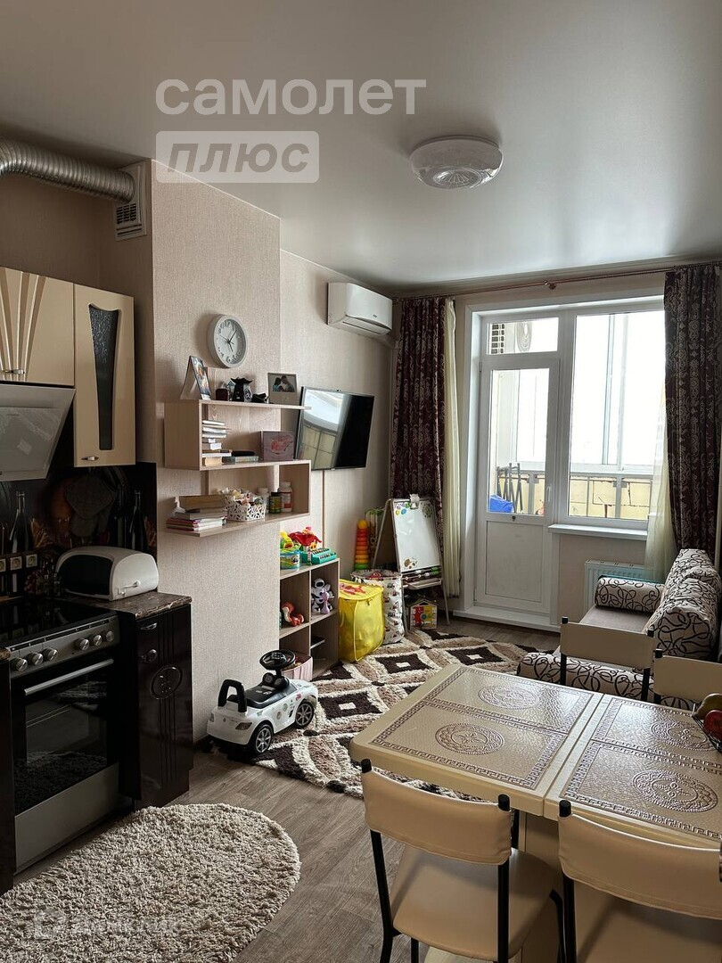 Хорошая планировка, большая кухня - гостиная и просторная спальня, балкон на две комнаты. Ремонт от застройщика.