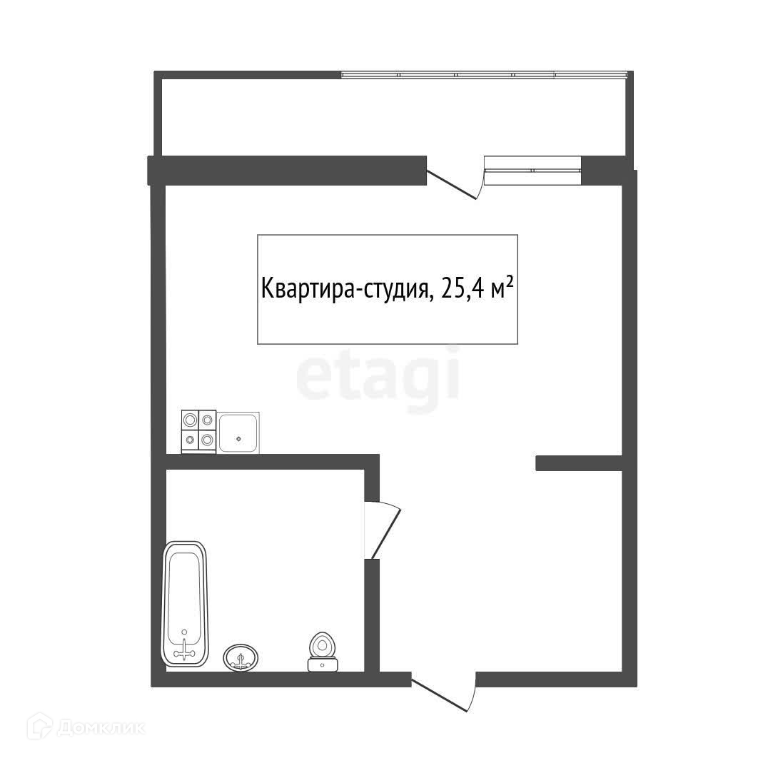 Общая площадь 25.4 м2