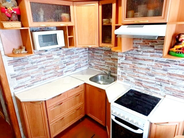 Квартира светлая и теплая.  На кухне кухонный гарнитур. Три лоджии. Косметический ремонт, сан узел совмещён душевая кабинка. Один взрослый собственник, без долгов и ограничений, в собственности более 5 лет.