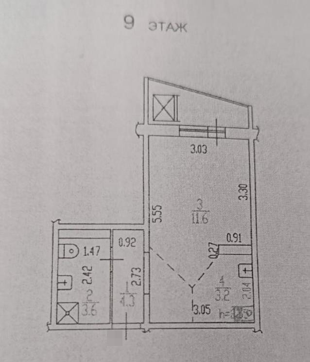 Балкон, лоджия 1 балкон