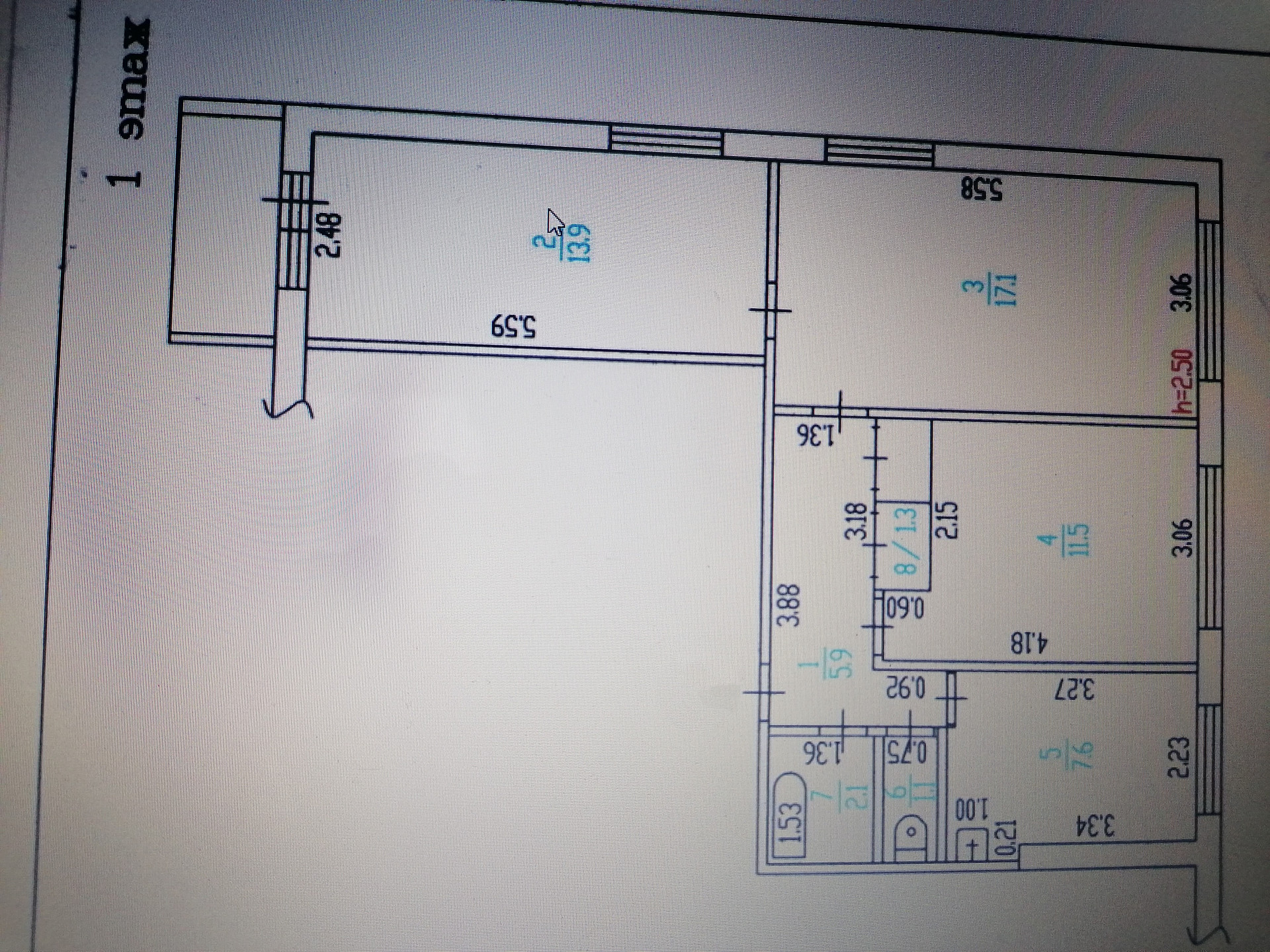 Высота потолков 2.5 м