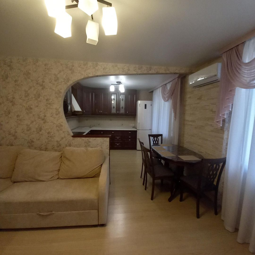 Кухонный гарнитур с керамической мойкой выполненный на заказ, поразит вас эргономичностью, добротностью и качеством использованных материалов. И он остается в подарок новым жильцам, как и варочная поверхность Electrolux, вытяжка Elikor, кондиционер сплит-система серии Bora, и встроенная мебель. В зоне кухни и в спальне дорогие итальянские обои. Художественная отделка части стен в коридоре и гостиной выполнена с применением облицовочной плитки под песчаник.
