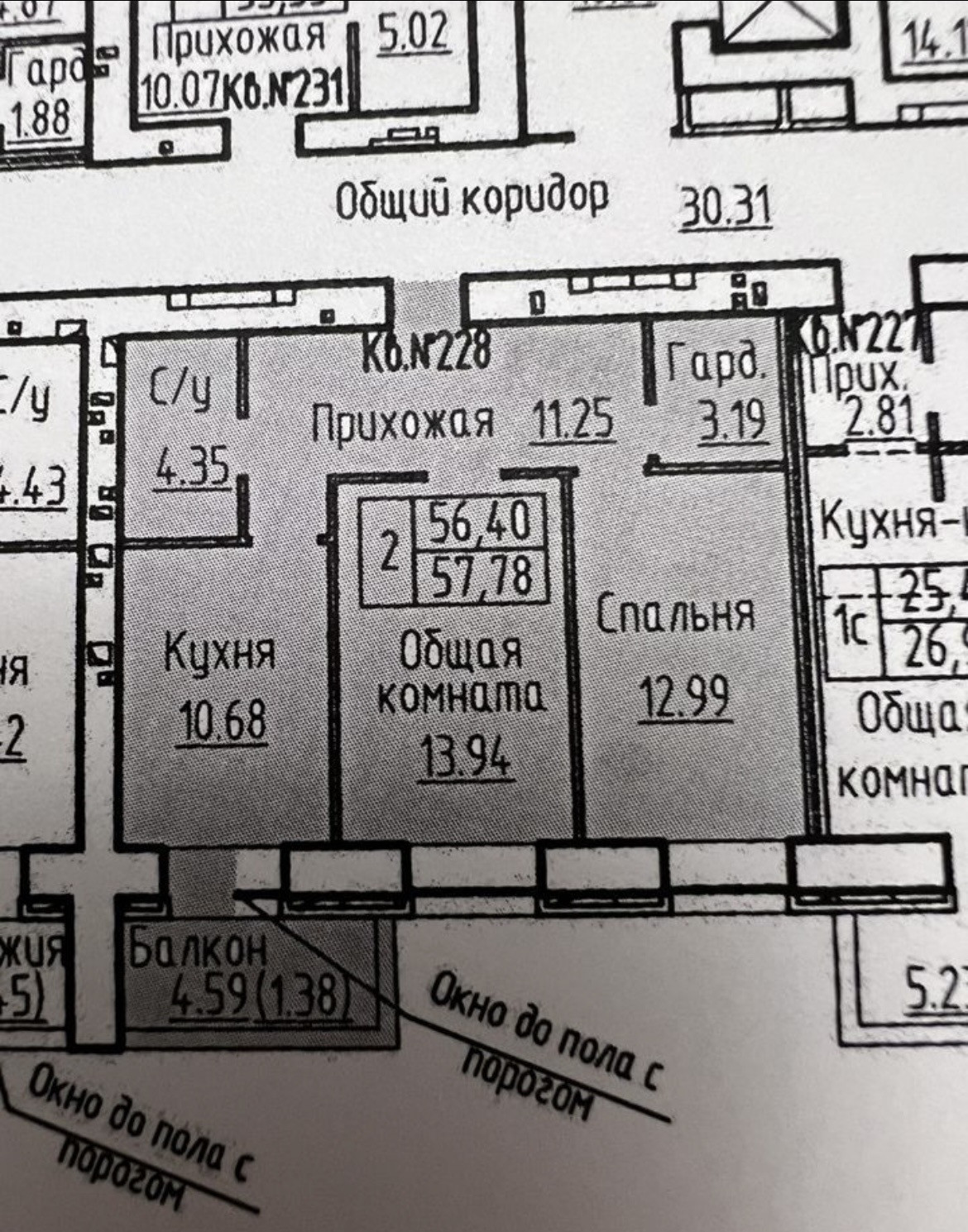 Общая площадь 57.8 м2